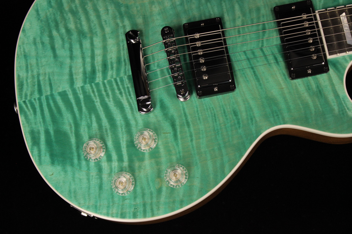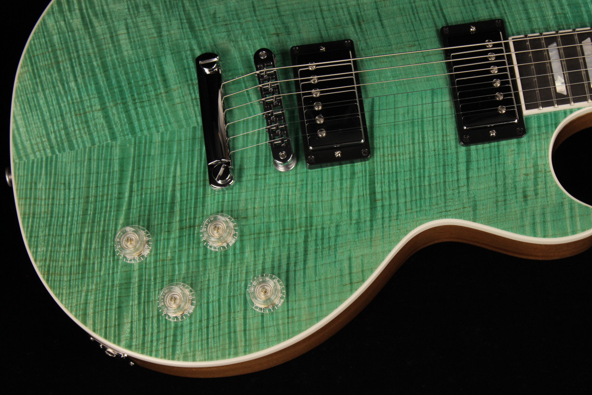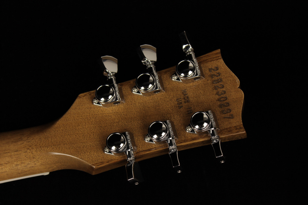 Hardware upgrades include Grover® locking Rotomatic® tuners, clear Top Hat knobs, and Burstbucker Pro™ and Burstbucker Pro + pickups. The control assembly features four push-pull pots to switch between Gibson humbucker™ and single coil P-90 sounds, both of which have defined so many genres of music across multiple generations since we invented them, along with phase switching and pure bypass for additional sonic variety.