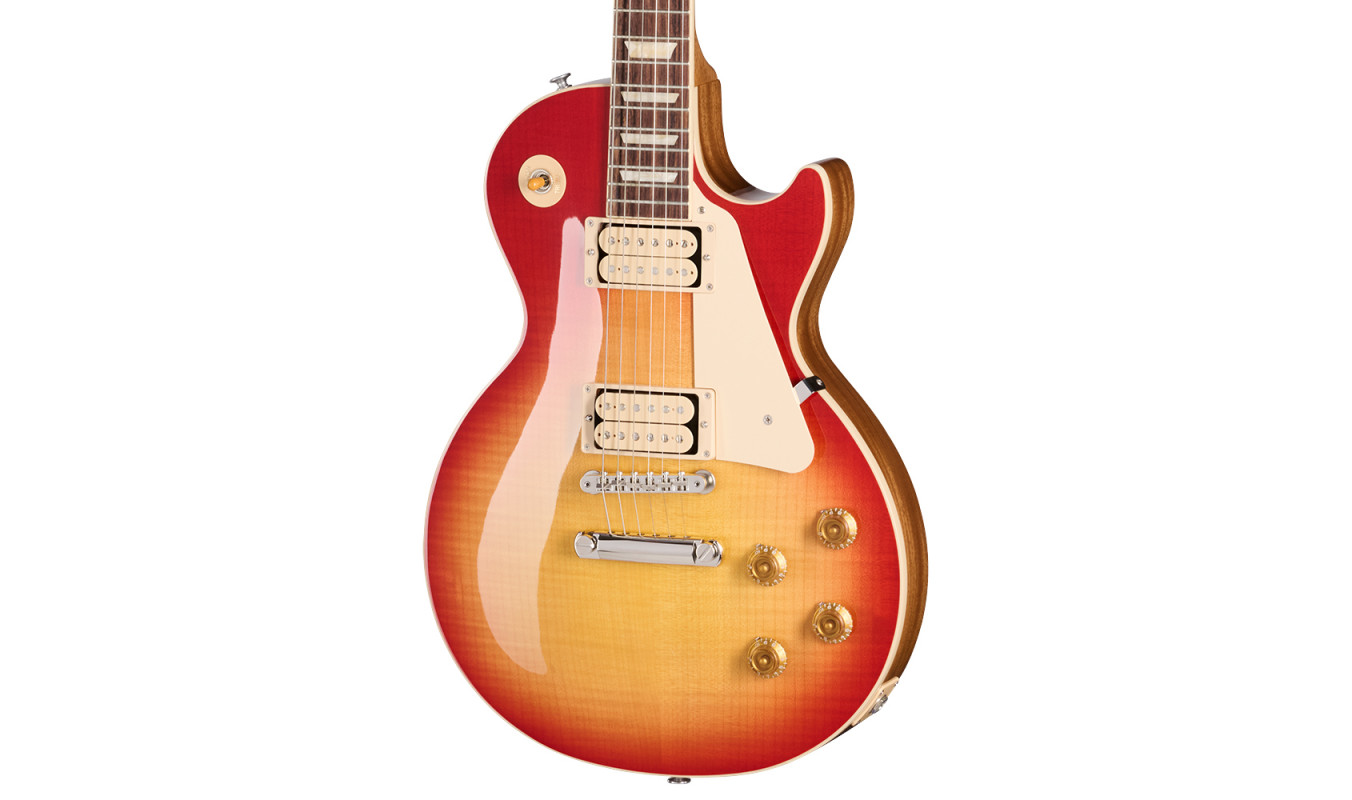 The Les Paul Standard 50s Double Trouble delivers all of the features and performance of our regular Les Paul Standard 50s models but with even more vintage appeal. These limited-run Les Paul models differ from our standard Les Paul Standard 50s models in two respects. First, the Burstbucker™ 1 and Burstbucker 2 pickups are left uncovered, and each has Double Classic White bobbins and is fitted with the standard Alnico 2 magnets. The second difference is in the finish. The finish colors are “Vintage” variations on our standard nitrocellulose lacquer finishes. Our standard gloss nitrocellulose lacquer finishes represent the finishes on brand-new models from the 1950s, while the full-gloss nitrocellulose lacquer Vintage finishes on the Les Paul Standard 50s Double Trouble models are slightly faded when compared to the standard versions, like the subtly faded light vintage aging that occurs over several years. The burst patterns vary somewhat from guitar to guitar since each is individually hand-sprayed.