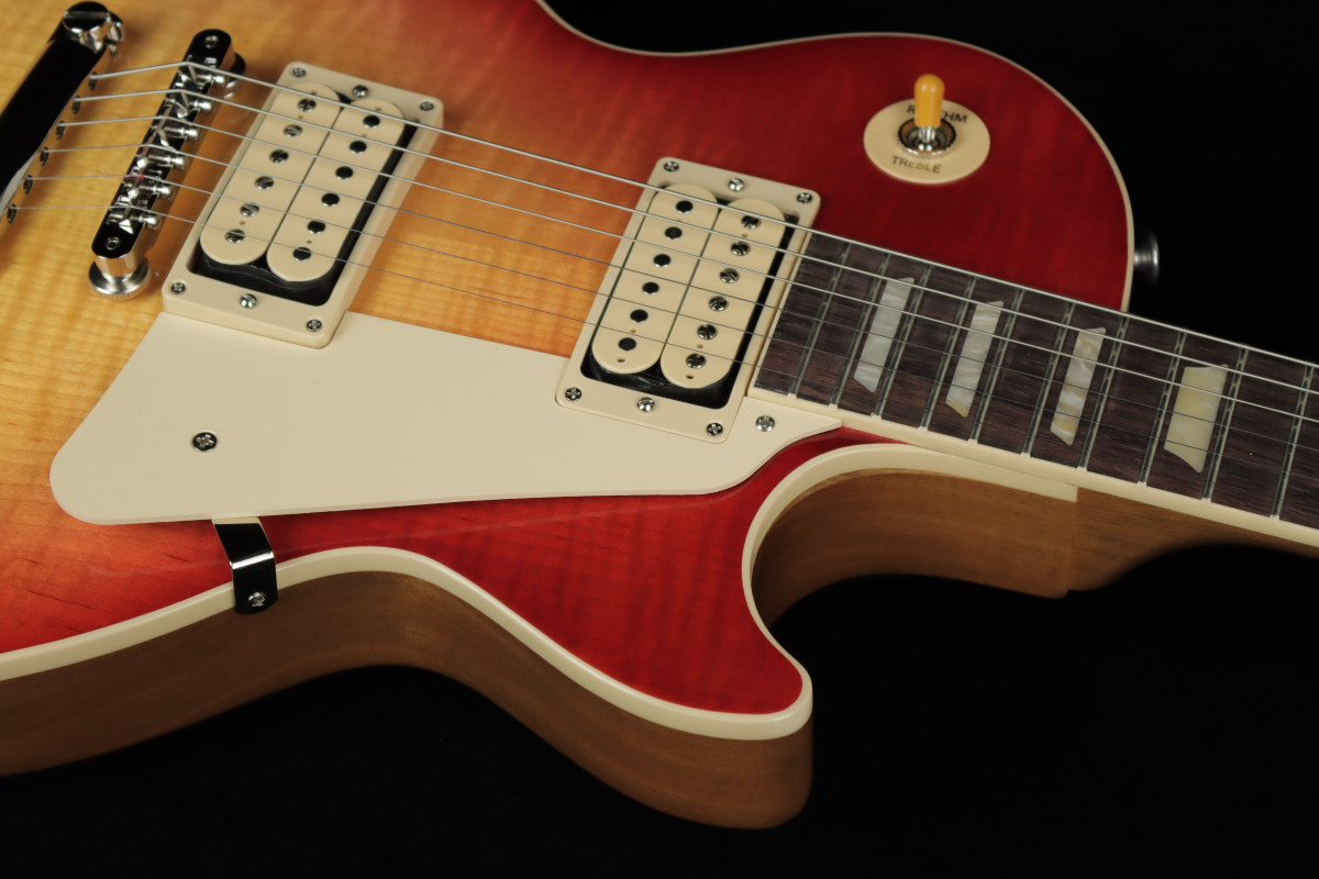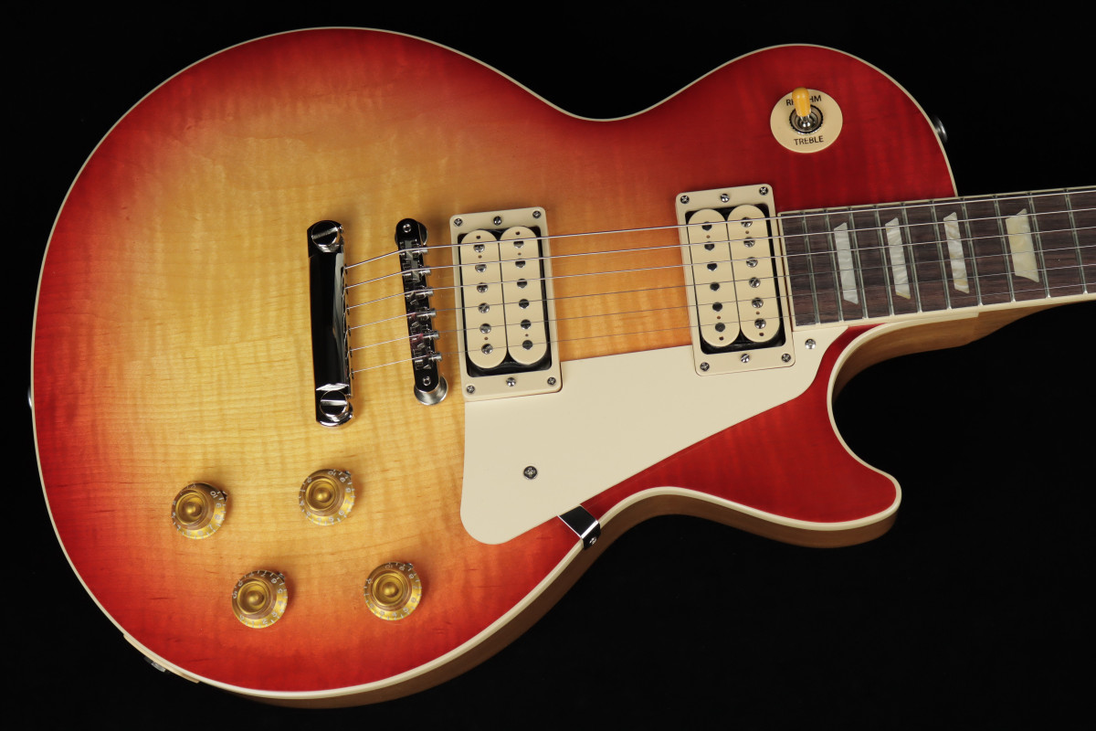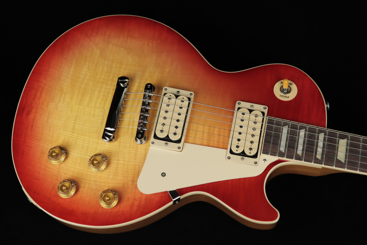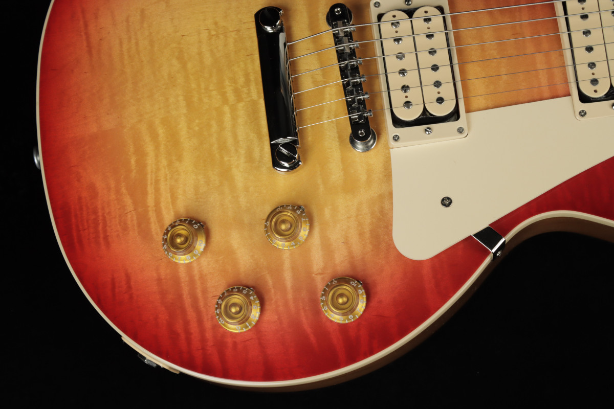 The Les Paul Standard 50s Double Trouble delivers all of the features and performance of our regular Les Paul Standard 50s models but with even more vintage appeal. These limited-run Les Paul models differ from our standard Les Paul Standard 50s models in two respects. First, the Burstbucker™ 1 and Burstbucker 2 pickups are left uncovered, and each has Double Classic White bobbins and is fitted with the standard Alnico 2 magnets. The second difference is in the finish. The finish colors are “Vintage” variations on our standard nitrocellulose lacquer finishes. Our standard gloss nitrocellulose lacquer finishes represent the finishes on brand-new models from the 1950s, while the full-gloss nitrocellulose lacquer Vintage finishes on the Les Paul Standard 50s Double Trouble models are slightly faded when compared to the standard versions, like the subtly faded light vintage aging that occurs over several years. The burst patterns vary somewhat from guitar to guitar since each is individually hand-sprayed.