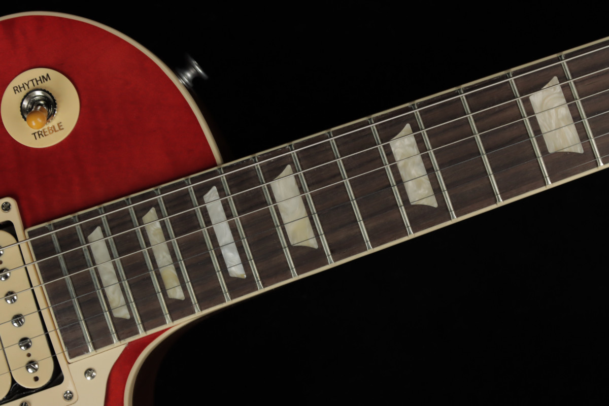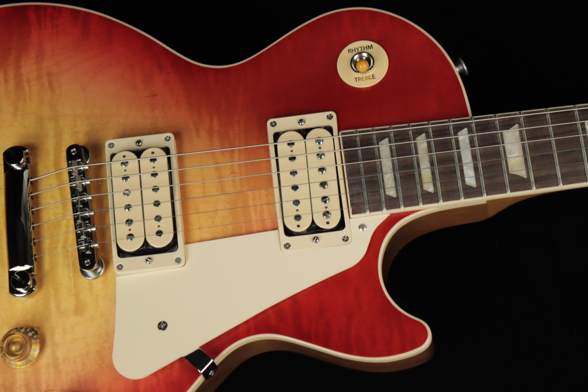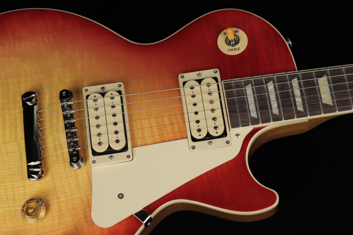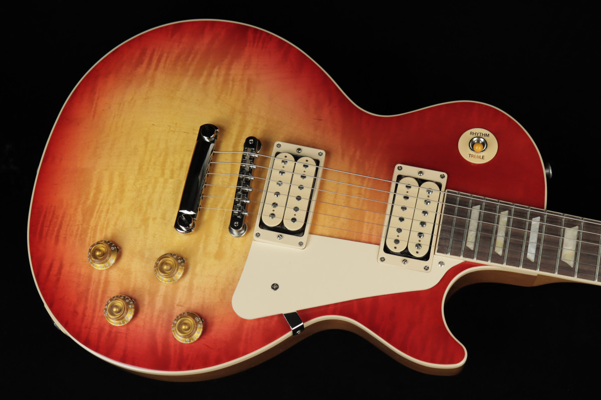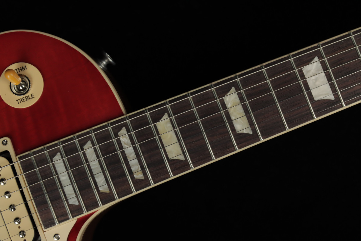 The Les Paul Standard 50s Double Trouble delivers all of the features and performance of our regular Les Paul Standard 50s models but with even more vintage appeal. These limited-run Les Paul models differ from our standard Les Paul Standard 50s models in two respects. First, the Burstbucker™ 1 and Burstbucker 2 pickups are left uncovered, and each has Double Classic White bobbins and is fitted with the standard Alnico 2 magnets. The second difference is in the finish. The finish colors are “Vintage” variations on our standard nitrocellulose lacquer finishes. Our standard gloss nitrocellulose lacquer finishes represent the finishes on brand-new models from the 1950s, while the full-gloss nitrocellulose lacquer Vintage finishes on the Les Paul Standard 50s Double Trouble models are slightly faded when compared to the standard versions, like the subtly faded light vintage aging that occurs over several years. The burst patterns vary somewhat from guitar to guitar since each is individually hand-sprayed.