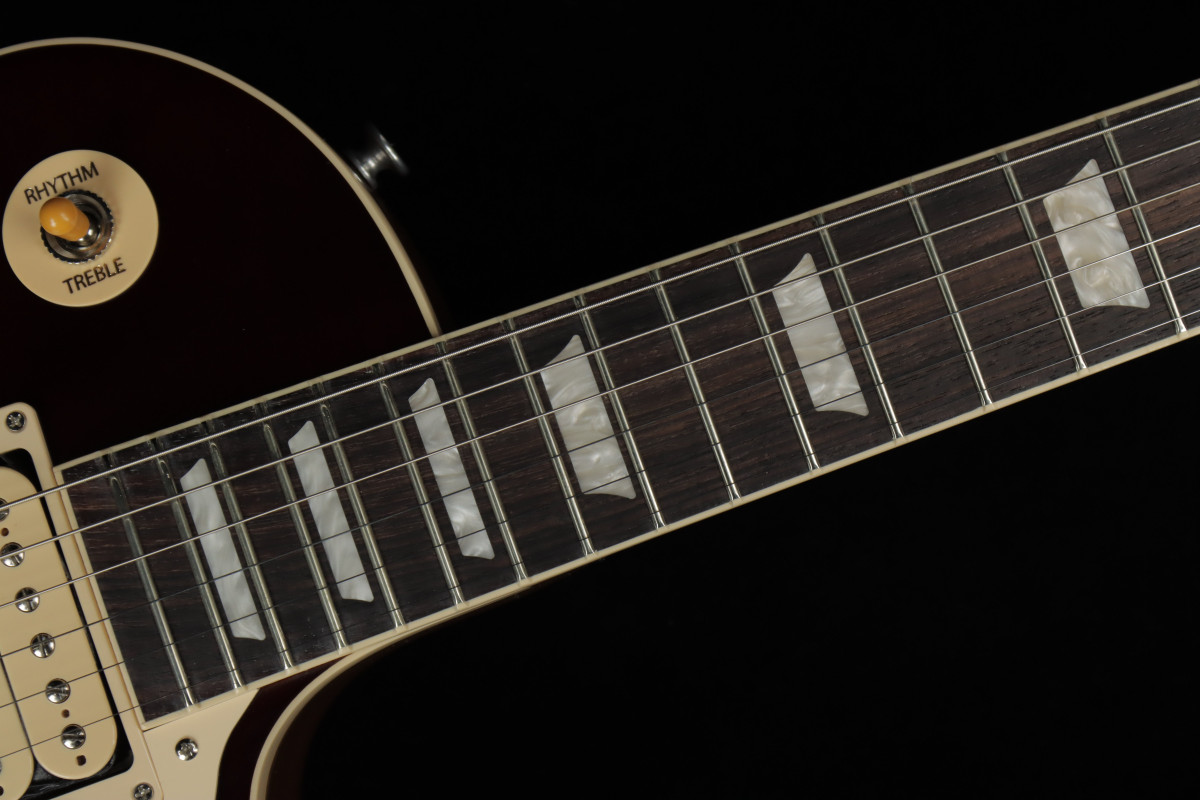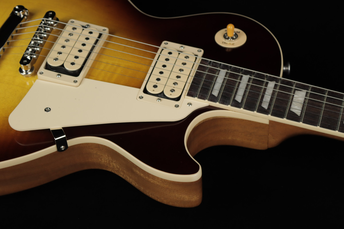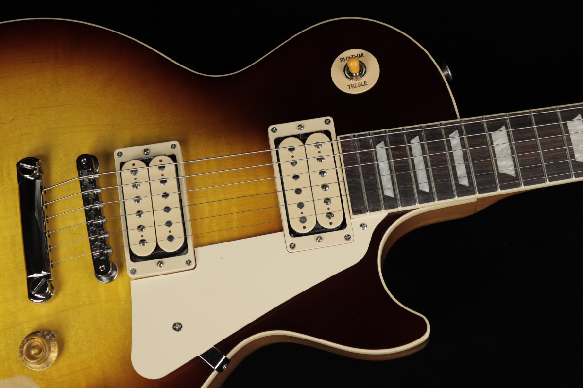 The Les Paul Standard 50s Double Trouble delivers all of the features and performance of our regular Les Paul Standard 50s models but with even more vintage appeal. These limited-run Les Paul models differ from our standard Les Paul Standard 50s models in two respects. First, the Burstbucker™ 1 and Burstbucker 2 pickups are left uncovered, and each has Double Classic White bobbins and is fitted with the standard Alnico 2 magnets. The second difference is in the finish. The finish colors are “Vintage” variations on our standard nitrocellulose lacquer finishes. Our standard gloss nitrocellulose lacquer finishes represent the finishes on brand-new models from the 1950s, while the full-gloss nitrocellulose lacquer Vintage finishes on the Les Paul Standard 50s Double Trouble models are slightly faded when compared to the standard versions, like the subtly faded light vintage aging that occurs over several years. The burst patterns vary somewhat from guitar to guitar since each is individually hand-sprayed.
