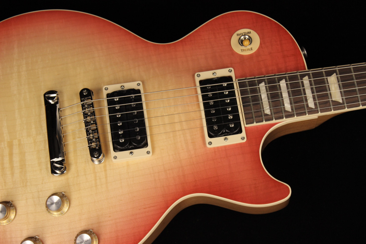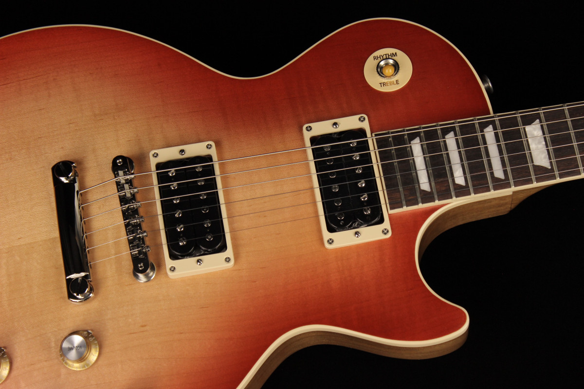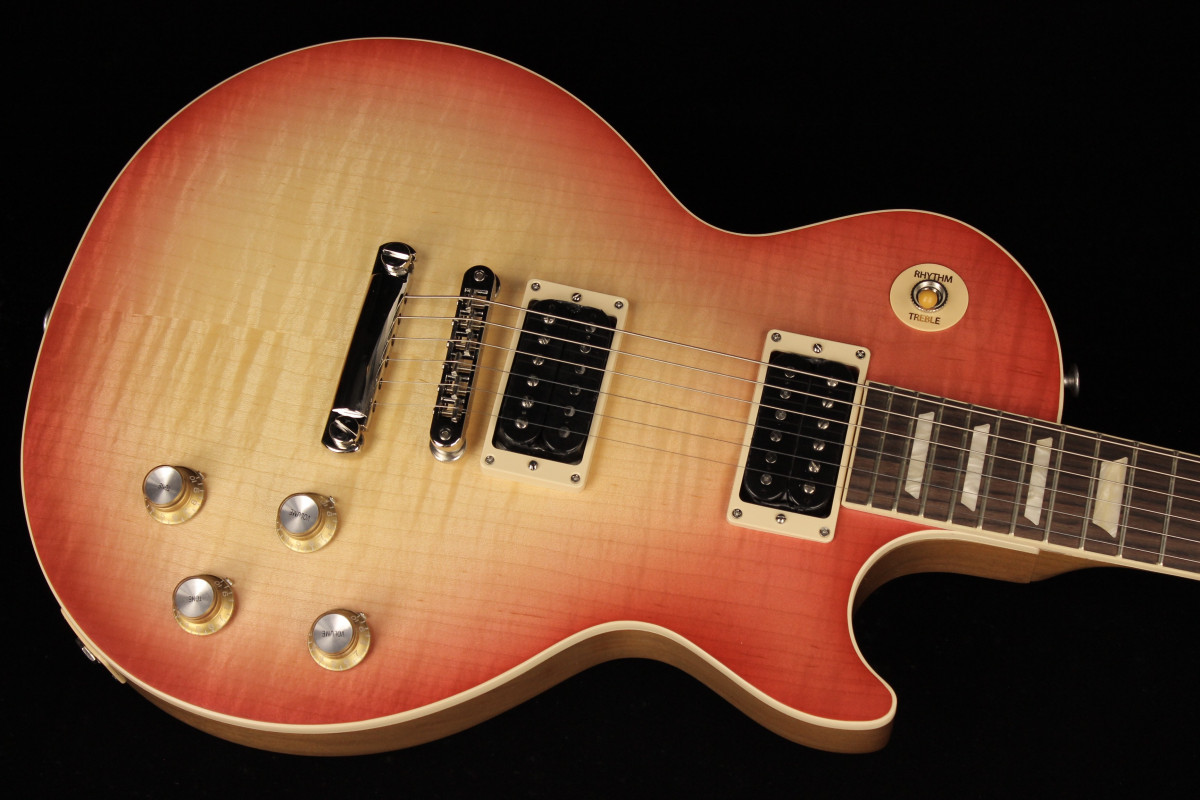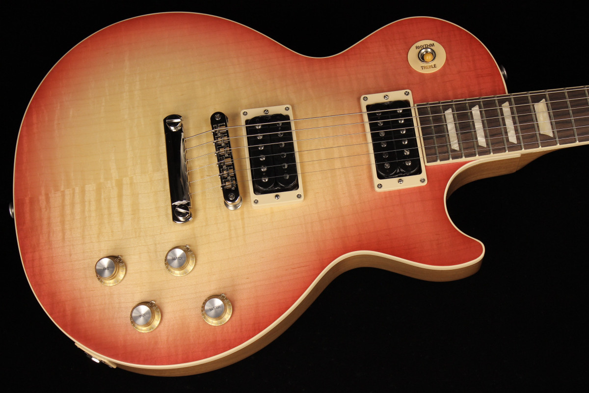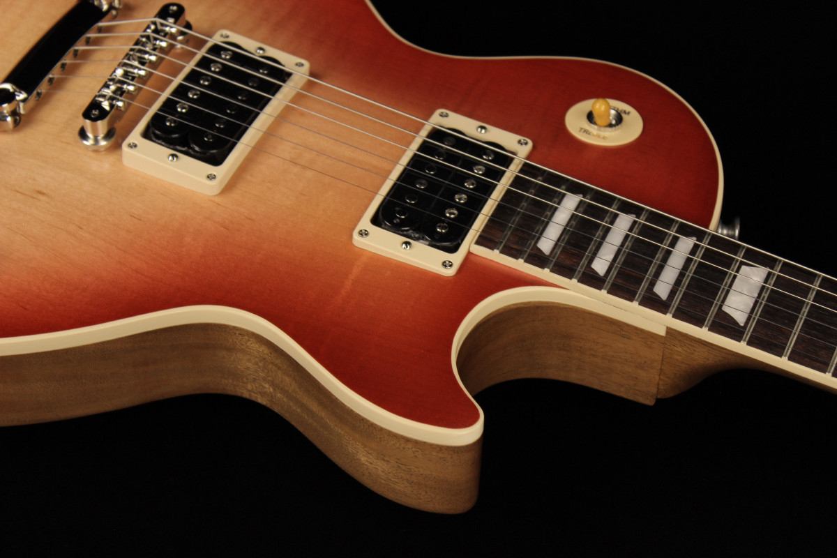 It has a solid mahogany body with an AA figured maple top and a SlimTaper 60s-style mahogany neck with a rosewood fingerboard and trapezoid inlays.