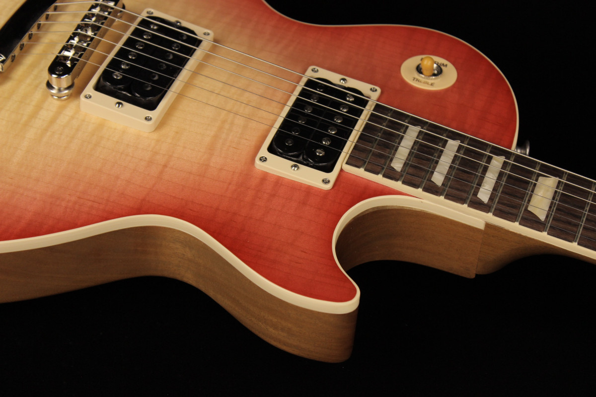 The open-coil 60s Burstbucker™ pickups are loaded with Alnico 5 magnets and hand-wired to audio taper potentiometers and Orange Drop® capacitors.