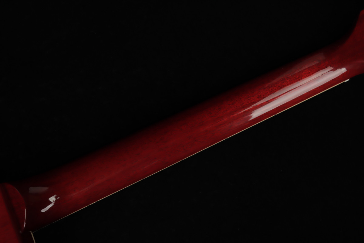 It features the customary materials combination for the body, namely mahogany without weight relief and maple. The neck has a 60's Slim Taper profile, characterized by its slim dimensions and exceptional playability.