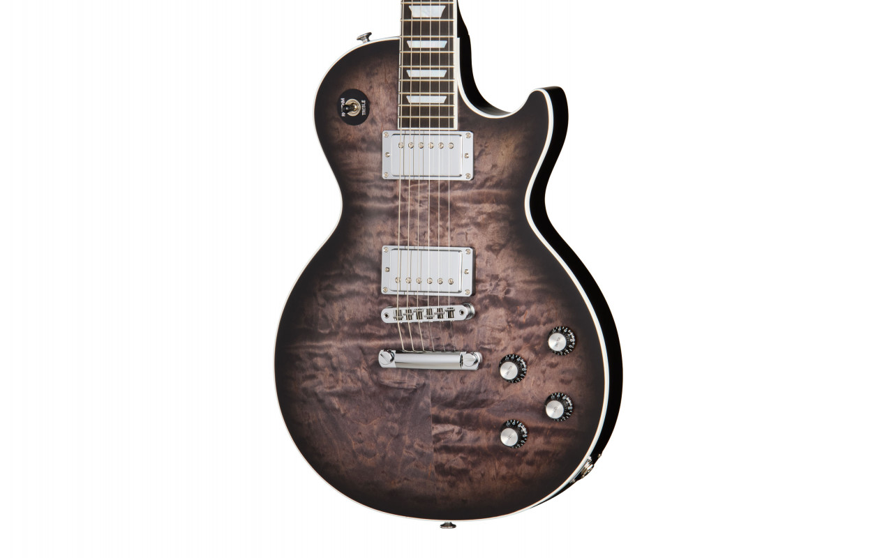 The mahogany body is enhanced by a spectacular AAA quilted maple top and is equipped with UltraModern weight relief, which ensures high comfort even during extended sets without compromising sustain and tonal fullness. The mahogany neck features an extremely smooth SlimTaper™ profile, while the Modern Contoured Heel provides fluid and natural access to the higher registers of the fretboard.