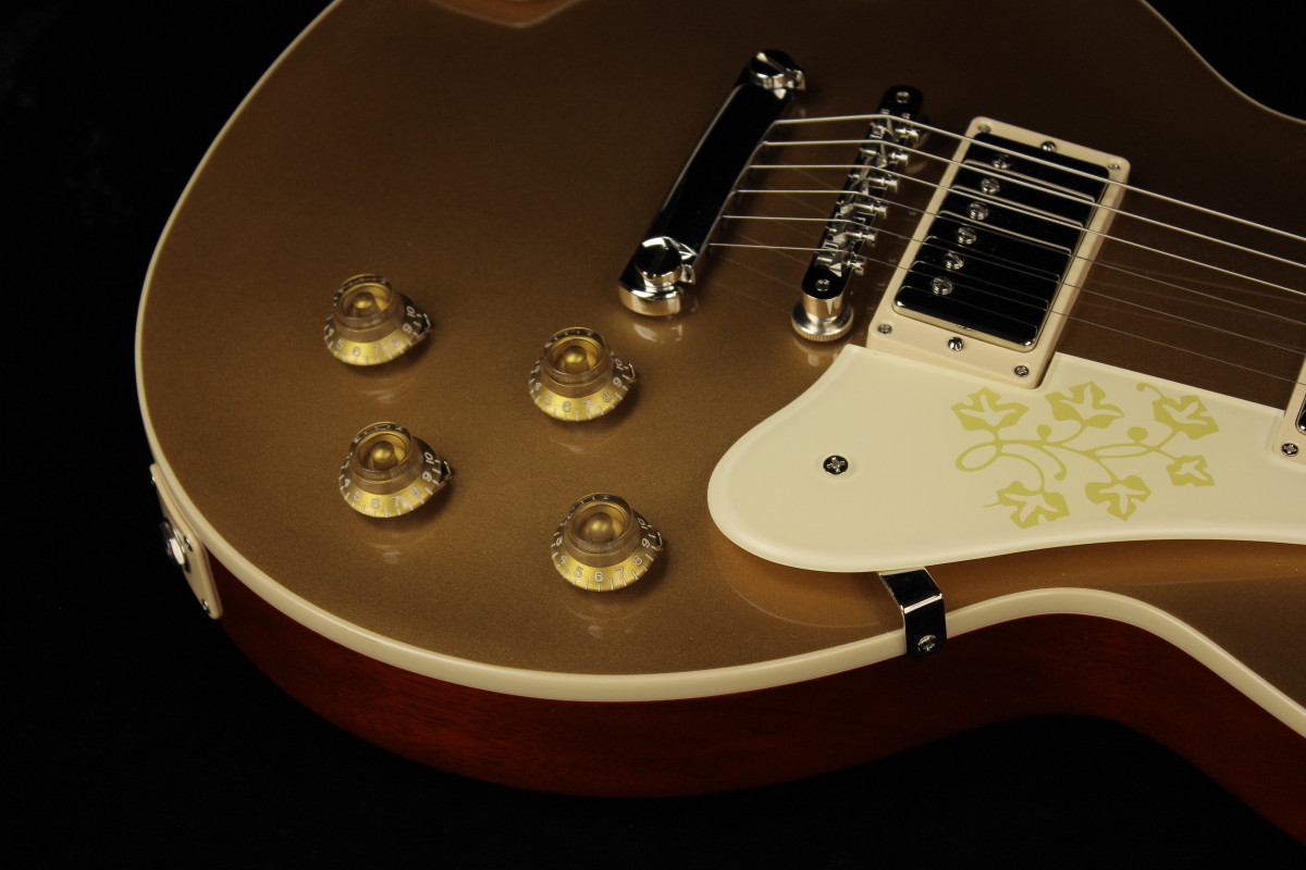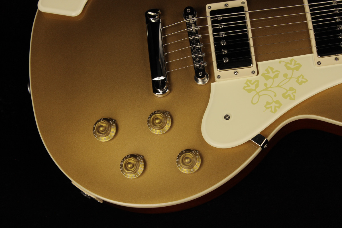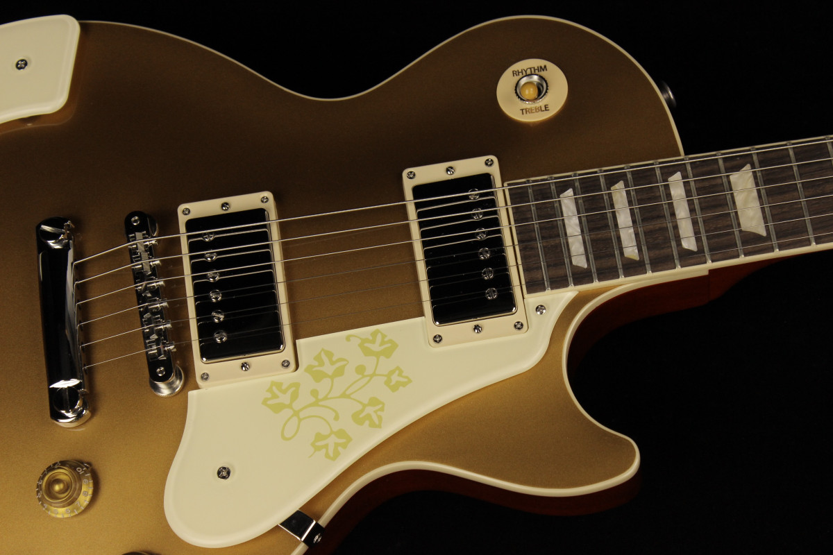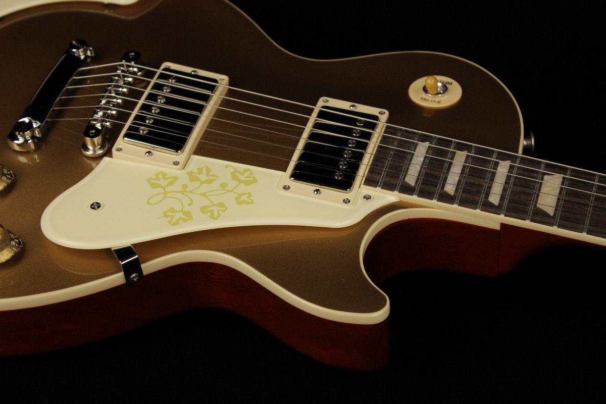 In 1958, it is believed that one Les Paul™ Goldtop model with an ES-295-style floral pickguard and matching armrest was made at the request of Mary Ford. Now, Gibson is proud to release the Mary Ford Les Paul Standard, based on that one-of-a-kind original. The Goldtop finish is accented by a Vintage Cherry back—a rarity for a Goldtop model.