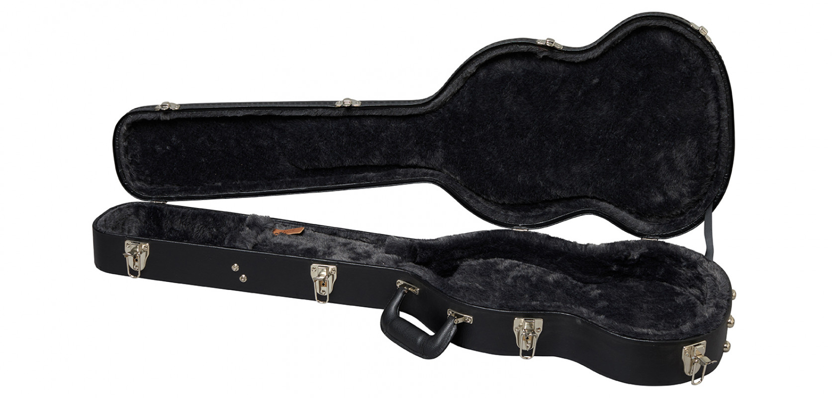 The Gibson SG Case is the original Gibson USA case for SG models. Externally, it features a black covering with a silver Gibson logo. The interior is lined with gray plush material.