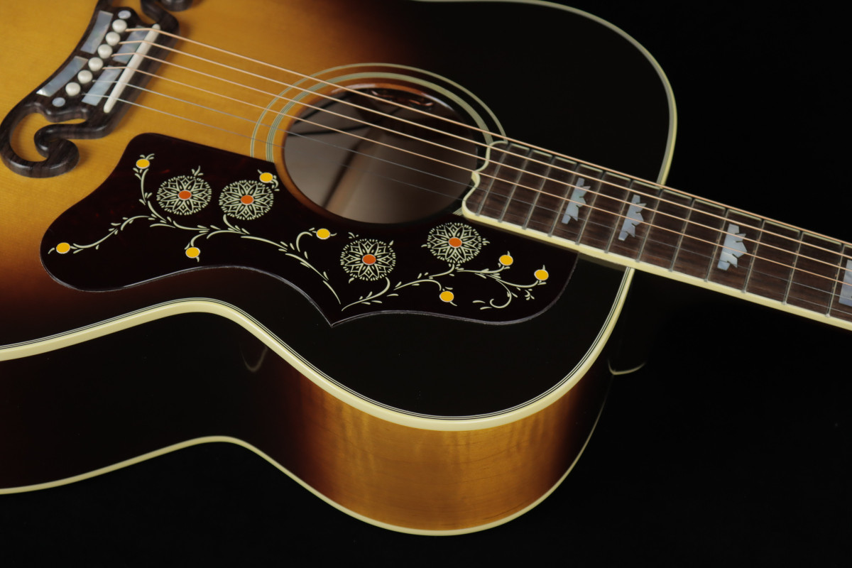 Pickguard | Tortoise Hand-engraved with the J-200’s traditional Floral and Vine Design |