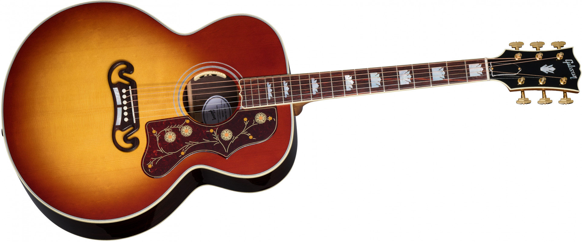 The J-200 Standard model from Gibson Acoustic is the quintessential Super Jumbo guitar. Crafted by the skilled hands of Gibson's master luthiers in Bozeman, Montana, USA, this guitar is the crown jewel of the Gibson Acoustic catalog.