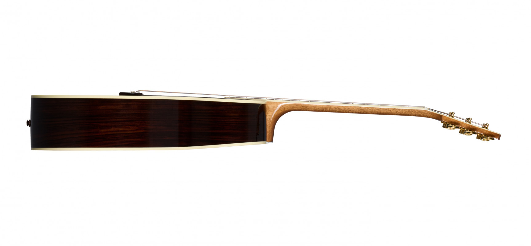 This version, introduced in 2024, features a back and sides made of rosewood, a material that enhances the instrument's emphasis on both low and high frequencies, resulting in a fuller and more powerful tone overall.