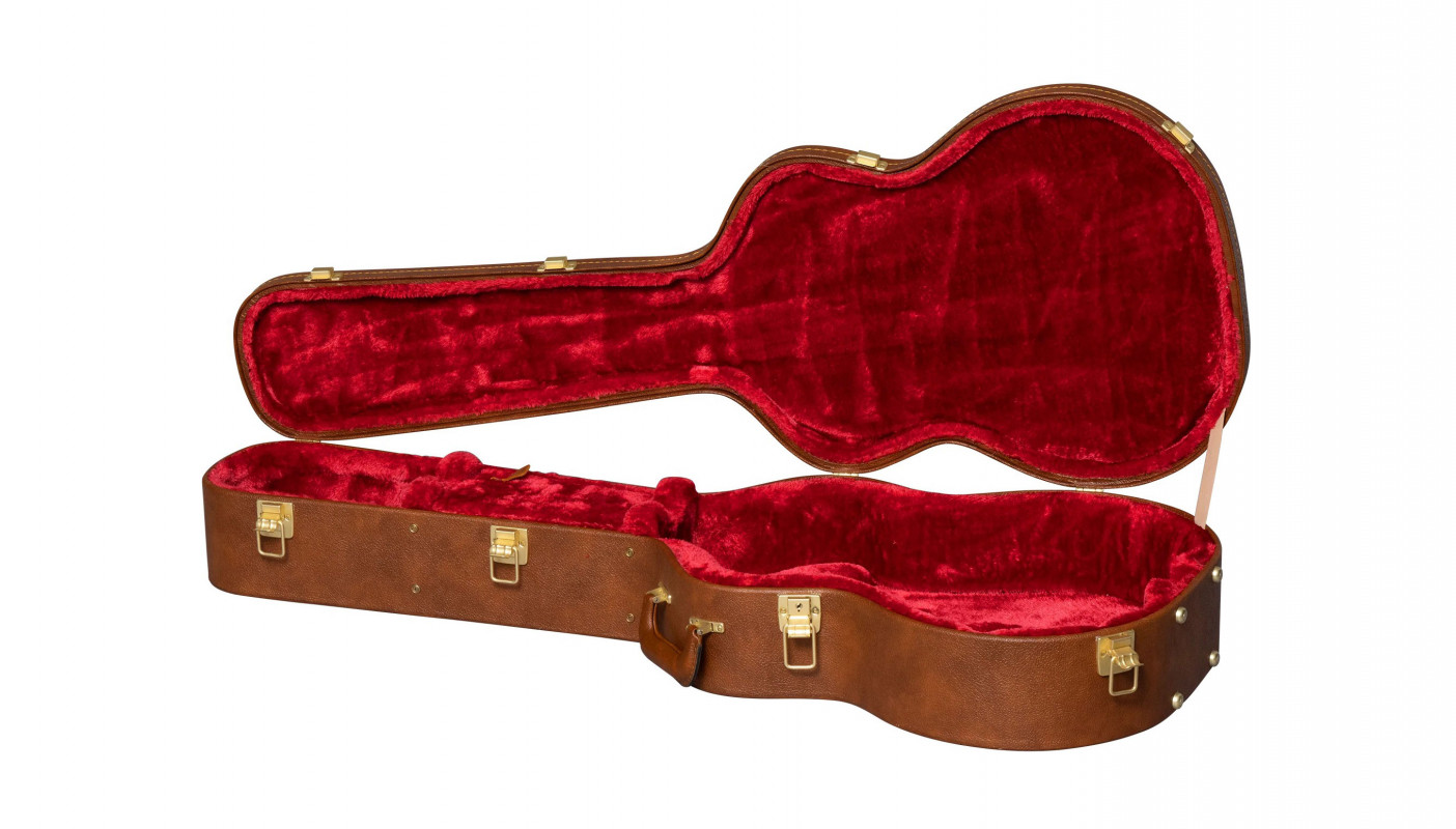 The Gibson Small-Body Acoustic Original Hardshell Case is the original Gibson USA case designed for Gibson small-body acoustic guitars. Externally, it features a brown covering with a gold Gibson logo. The interior is lined with red plush.