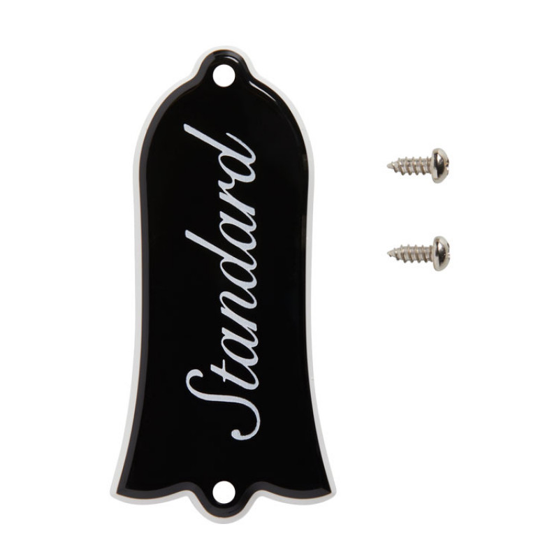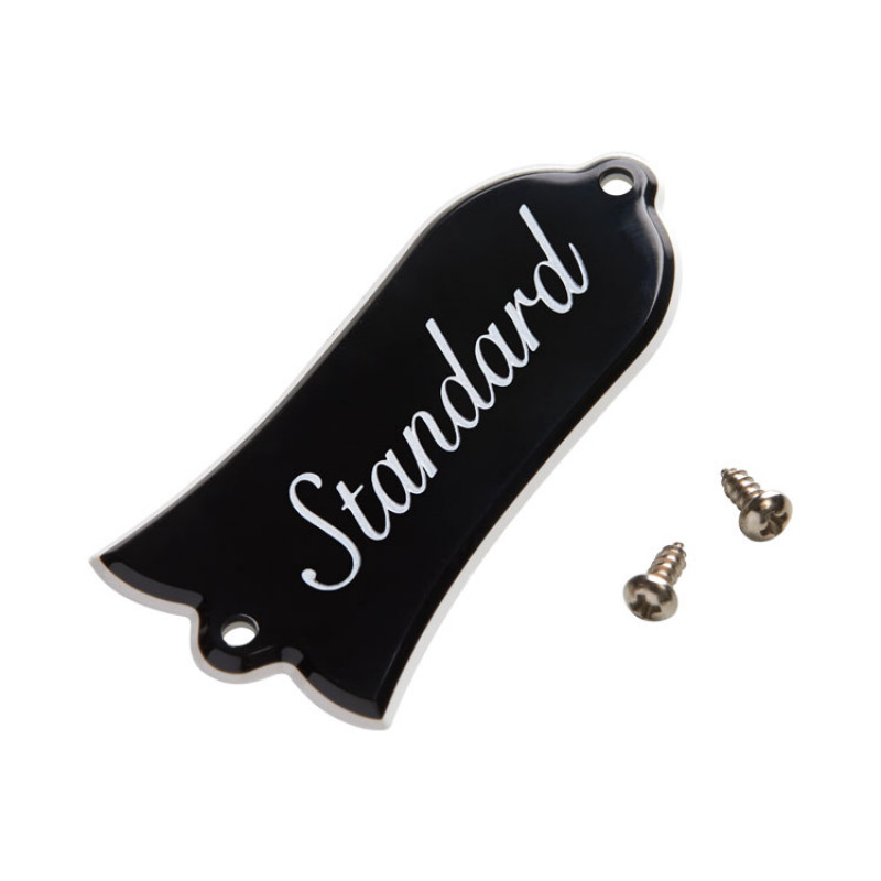 This truss rod cover is the one that comes standard on Les Paul Standard models. It is made of ABS plastic with a double-layer white border and features the "Standard" logo. The package also includes the screws for installation.