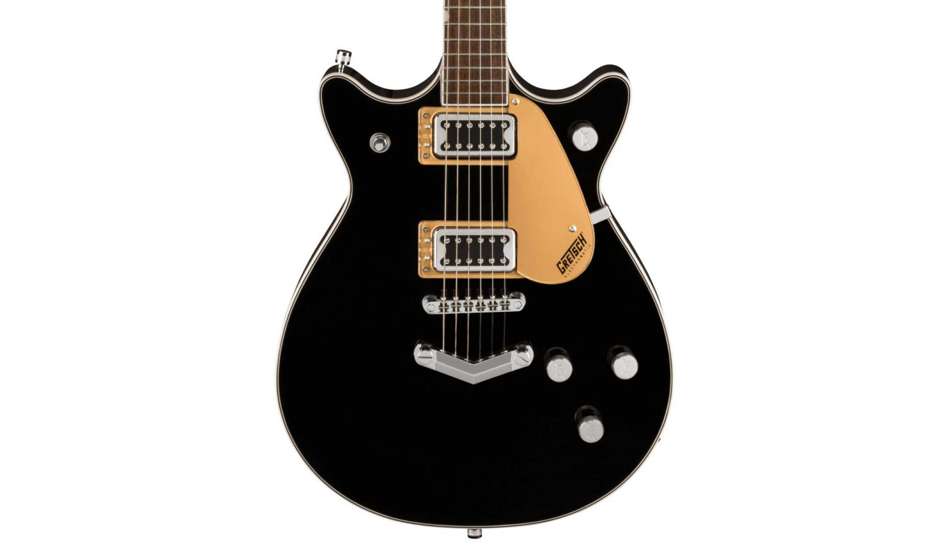 The new Gretsch G5222 Electromatic Double Jet BT with V-Stoptail offers increased power thanks to the pair of Broad'Tron™ pickups that blend with the classic brilliance of the "Jet" model.