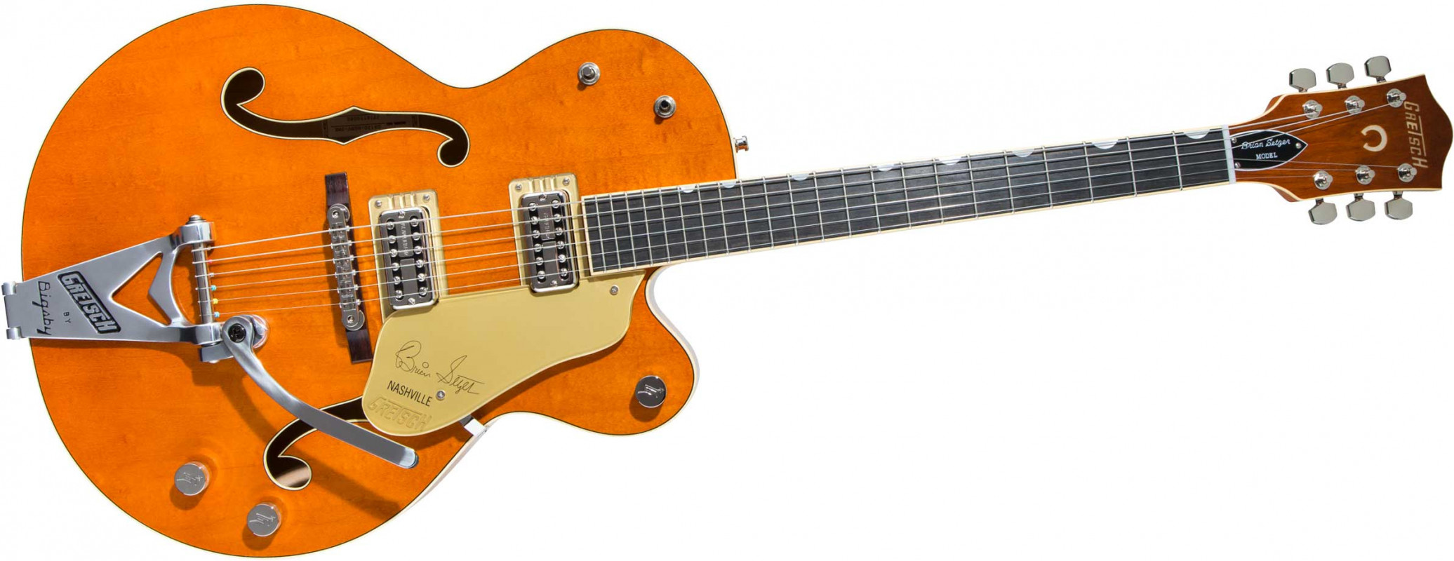 The Gretsch G6120T-BSSMK Brian Setzer Nashville® Hollow Body '59 “Smoke” with Bigsby® is a tribute to the artist and his entire career. This is a professional instrument, featuring a vintage setup along with modern technical enhancements.