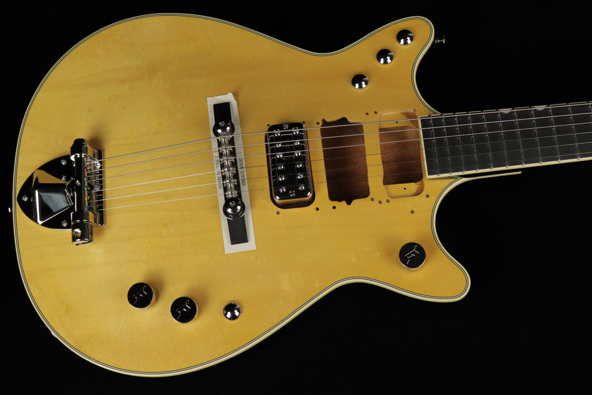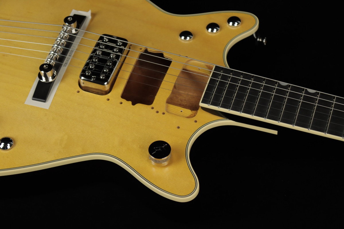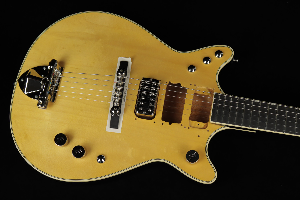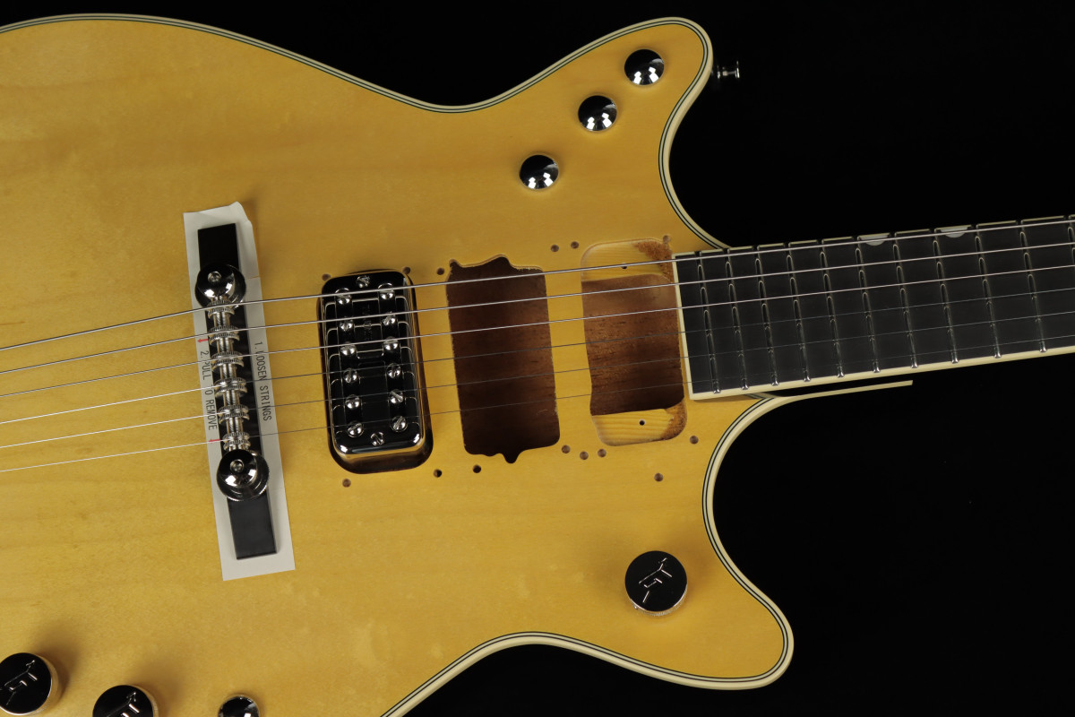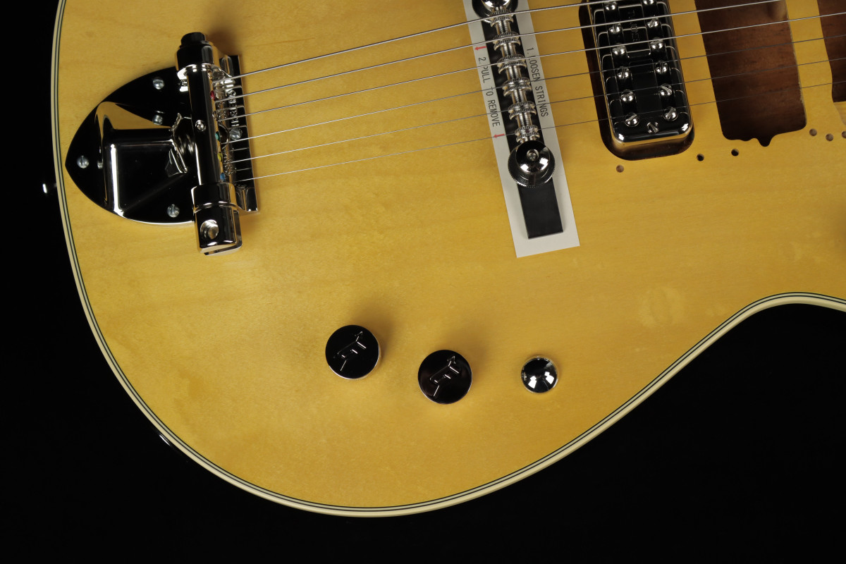 This models features the essential hallmarks of one of rock’s most iconic instruments including “DIY” pickup routes with simulated screw holes, chrome switch plugs, Space-Control™ bridge and ‘60s-style tailpiece. Open-cavity thunder roars from the thin-skin satin finished chambered mahogany body and is magnified by a high-output TV Jones® Power’Tron™ pickup.