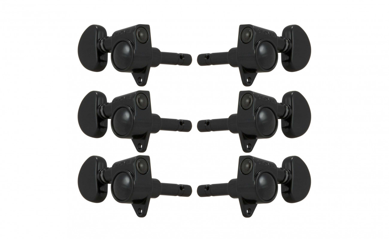 The Grover Locking Rotomatics offer the ease of use of traditional tuners combined with the reliability of a locking mechanism. Installing the string is simple: just pass it through the hole in the shaft, manually tension it, and start tuning. The locking system will automatically tighten itself. Gear ratio 18:1. Mounting hardware included.