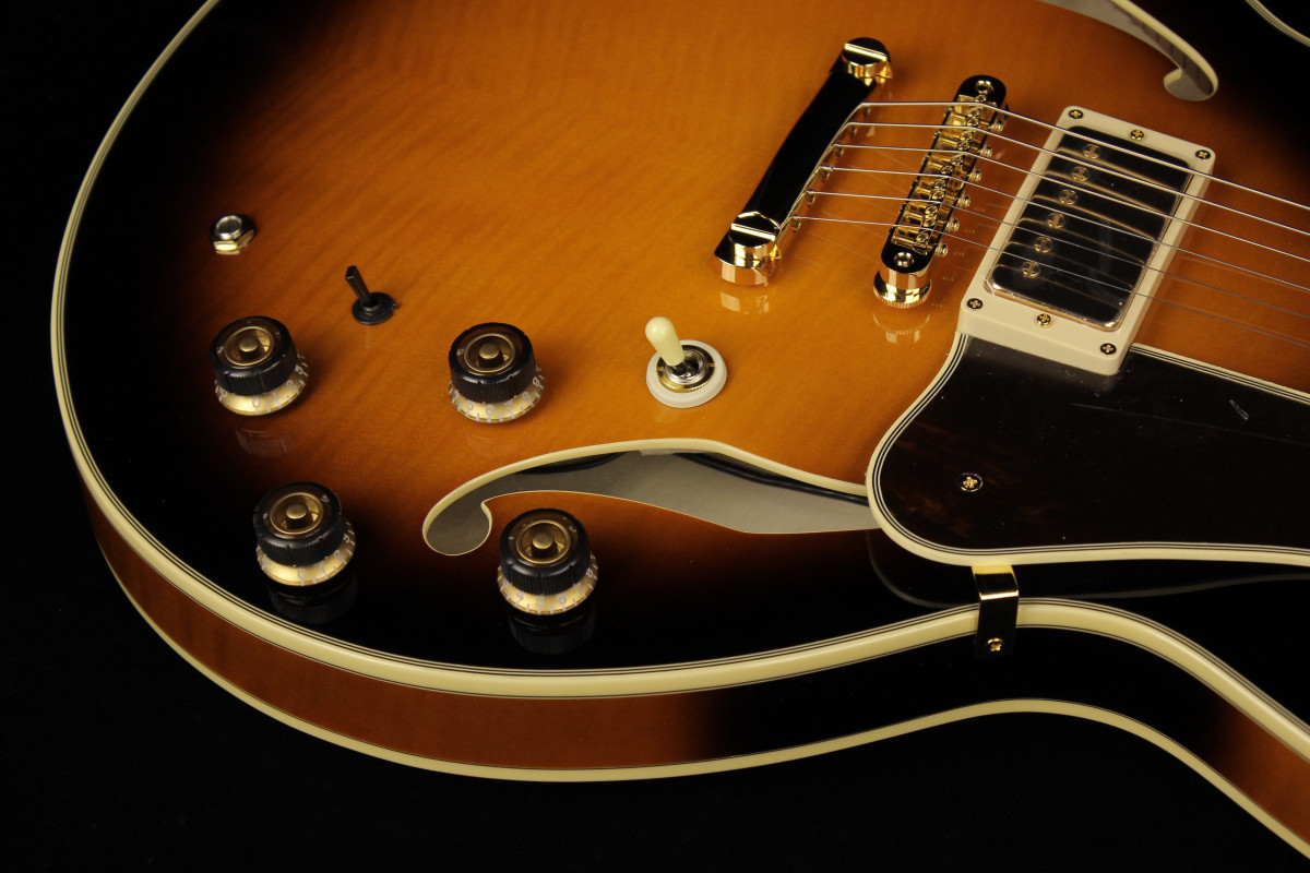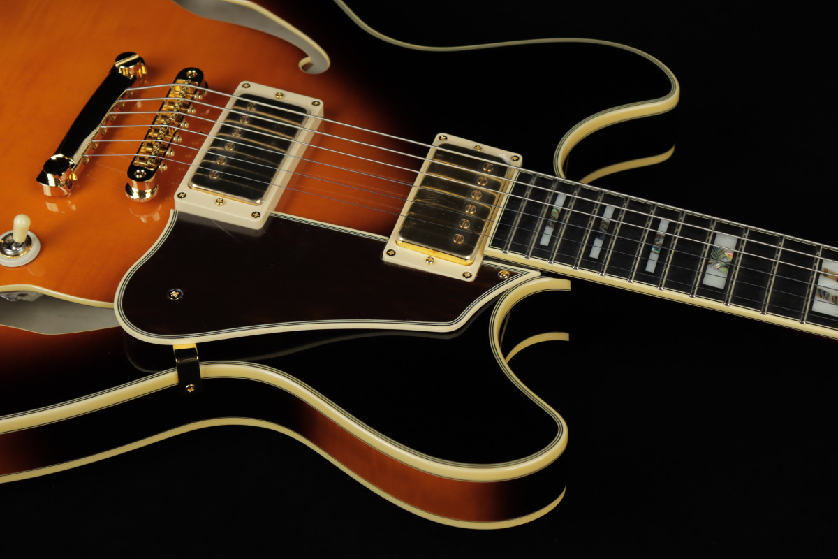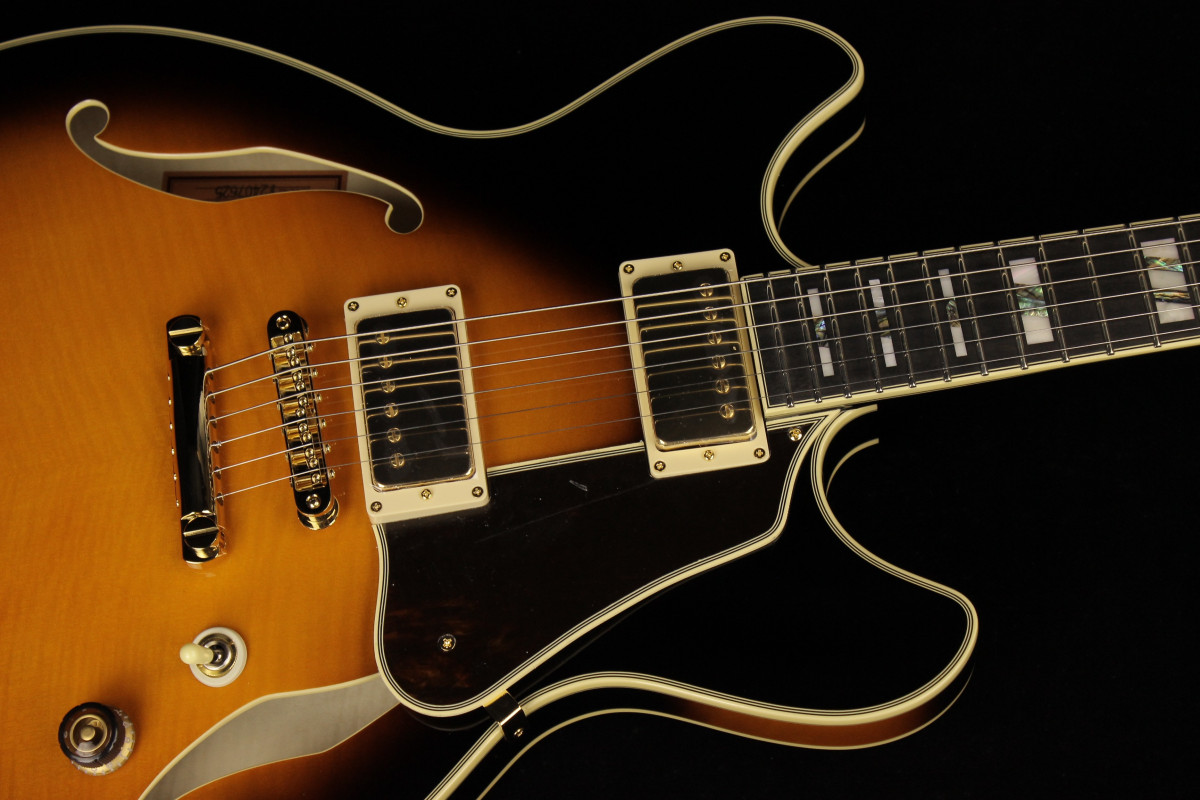 The Artstar AS2000 has a vintage voice, courtesy of the two Super 58 humbuckers. The Alnico III magnets and winding technique yield a vintage-style sound that sounds like the semi-hollows of yore. And for an extra helping of sustain, the pickups are mounted directly in the center block. Your AS2000 is equipped with a Tri-sound switch to unlock three different pickup “voices.” The Super 58 humbuckers can be used in series, parallel, and single-coil operation, opening the door for you to explore an entire universe of sounds.