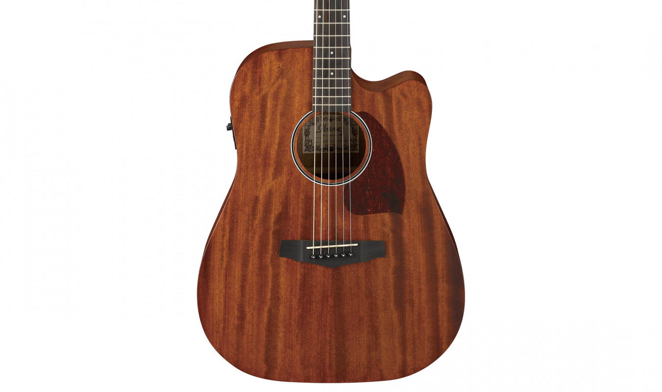 The Ibanez PF12MHCE is an amplified dreadnought acoustic guitar featuring a body entirely made of Okoume and an Open Pore finish. This entry-level instrument offers an excellent quality-to-price ratio, making it perfect for the beginner guitarist.