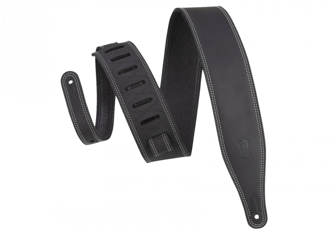 The Levy's M17BDS-BLK is made with a soft vintage-looking leather and can be adjusted from 41" (104.14 cm) to 55" (139.7 cm). It has a width of 2.5" (6.35 cm) and features double stitching on the edges, which prevents the strap from distorting under weight.