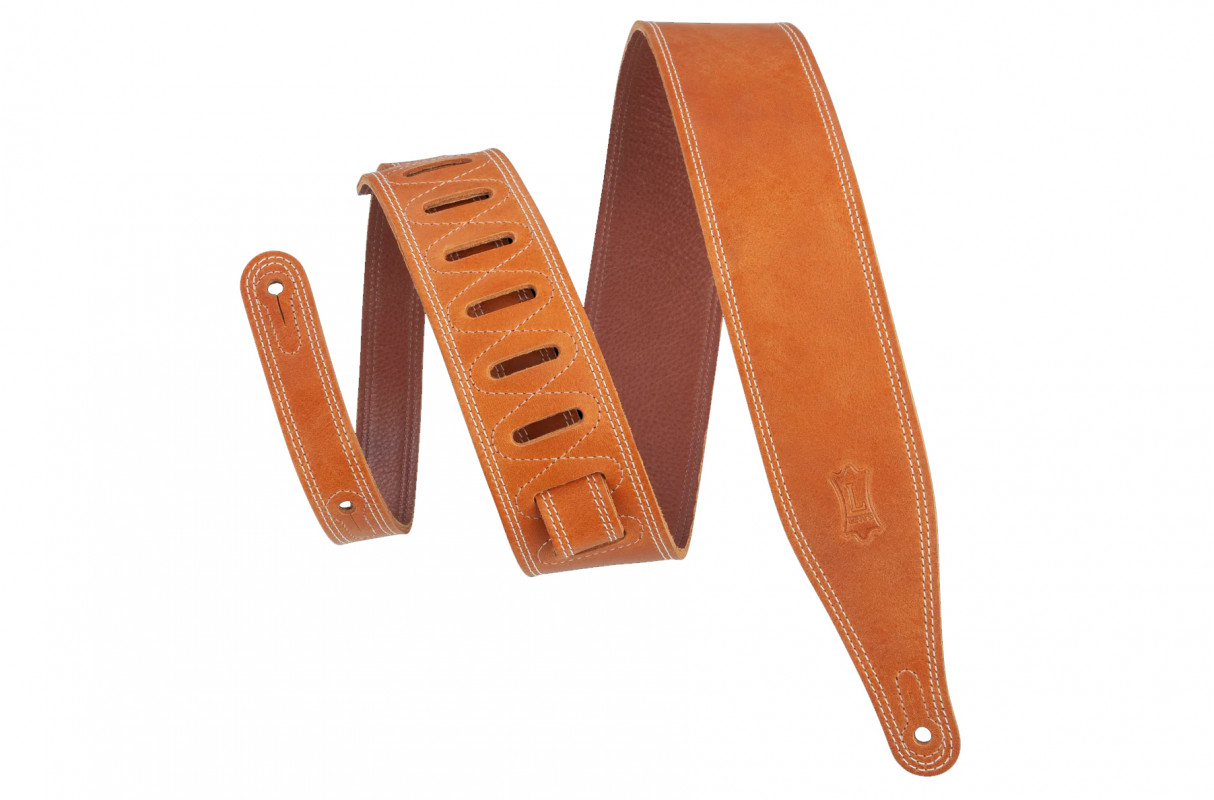 The Levy's M17BDS-TAN is made from soft leather with a vintage look and can be adjusted from 41" (104.14 cm) to 55" (139.7 cm). It has a width of 2.5" (6.35 cm) and features double stitching along the edges, which prevents the strap from distorting under weight.