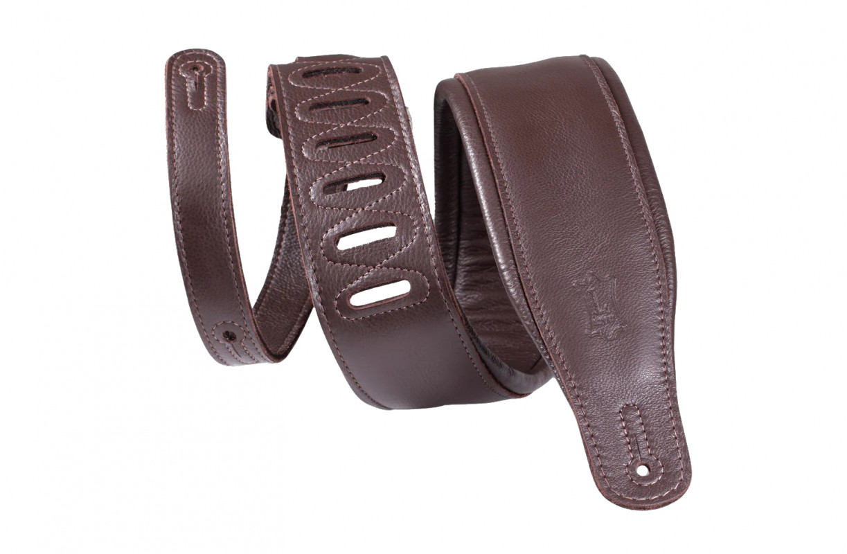 High-quality full-grain leather strap with internal foam padding, 7.6 cm wide, adjustable length from 94 to 130 cm.