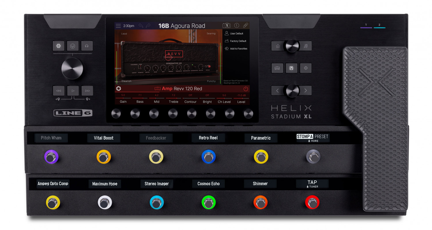 The Line 6 Helix Stadium XL represents the latest evolution of the already market-leading Helix by Line 6, developed to ensure sound quality and operational flexibility in professional settings. The new Agoura modeling engine provides accurate reproduction of the response and nuances of real amplifiers, featuring an extended dynamic range and reduced latency times. The "Hype Control" function allows users to select between extremely faithful simulations or live-optimized versions, adapting the tonal character to the context of use.