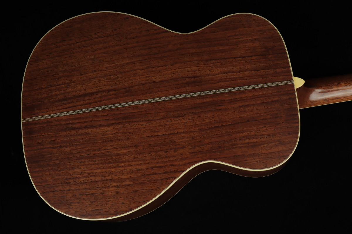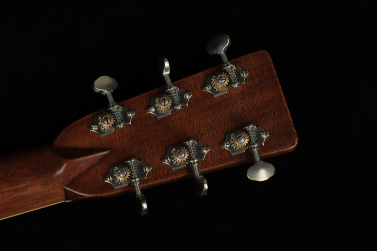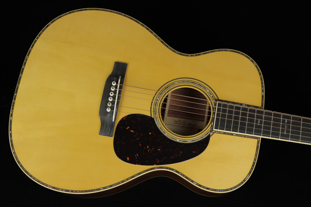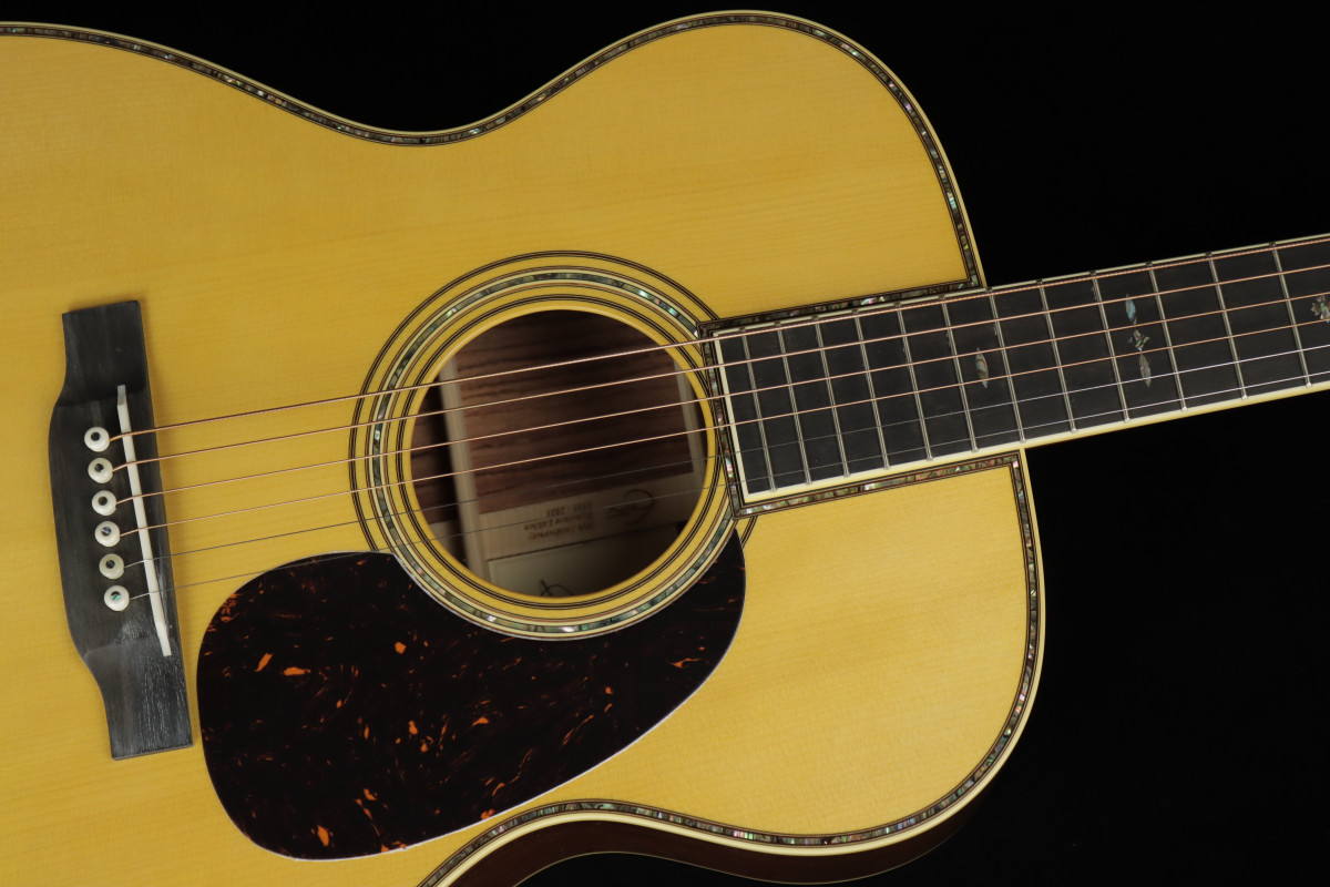 This combination delivers a warm, rich tonal depth, perfectly suited for both delicate fingerstyle playing and bold strumming. The scalloped Adirondack spruce Golden Era-inspired bracing enhances resonance and projection, ensuring this guitar fills any room with an unmistakably full-bodied sound. The genuine mahogany neck and Authentic 1939 shape, paired with a slightly thinner nut width and an ebony fingerboard adorned with Golden Era 42-style snowflake inlay, offer effortless playability and classic looks.