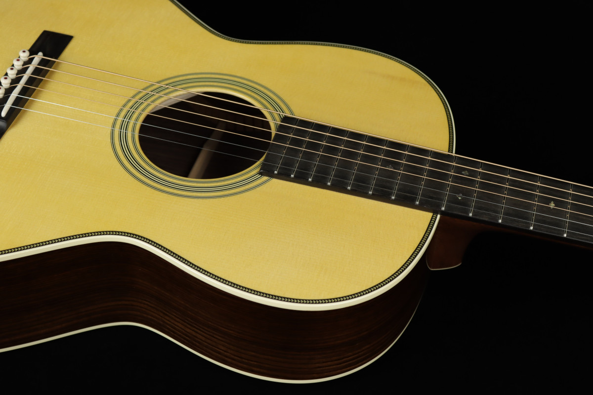 It features a neck joint at the 12th fret, a long 25.4" scale. It is a guitar exceptional for its balance and dynamics, suitable for the "strummer" guitarist as well as the "fingerstylist".