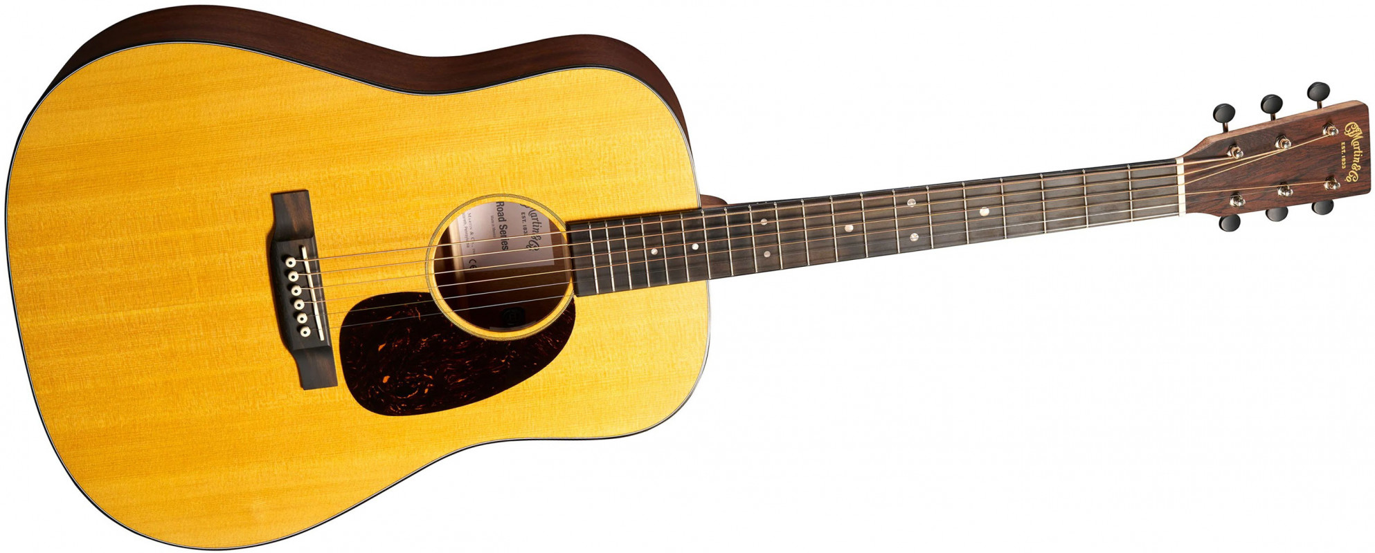 The Martin D-10E Retro is distinguished by its classic dreadnought body shape, one of the most iconic forms in Martin's tradition, known for its excellent sound projection and full, powerful response. The construction features a solid spruce top and solid sapele back and sides, imparting warmth and definition to the tone, with pronounced mids and solid yet well-controlled bass.