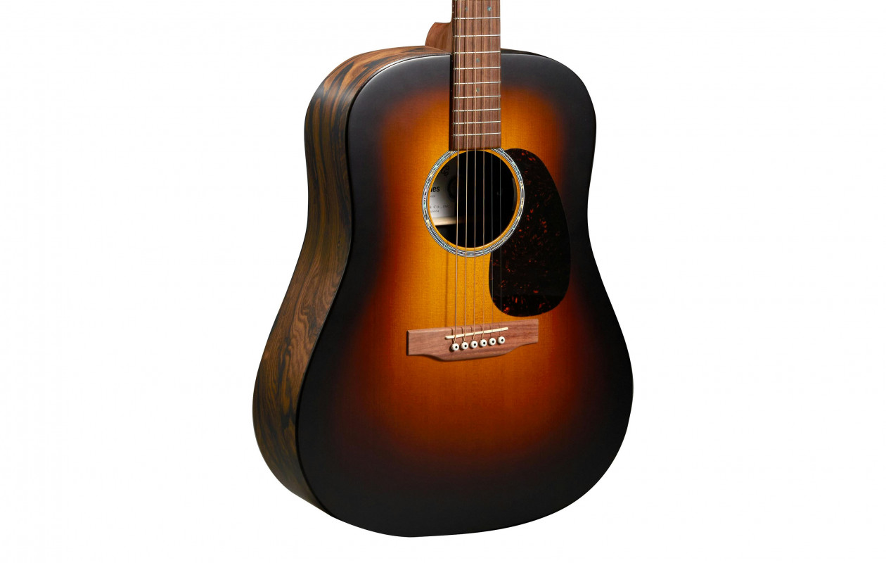 The Martin D-X2E Ziricote Burst Remastered is the electrified acoustic guitar from Martin & Co's "X" series featuring a dreadnought shape. It is characterized by a solid Sitka spruce top with a satin finish, Ziricote HPL back and sides, and a select hardwood neck.