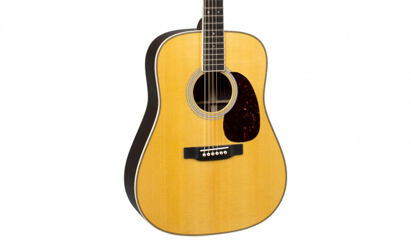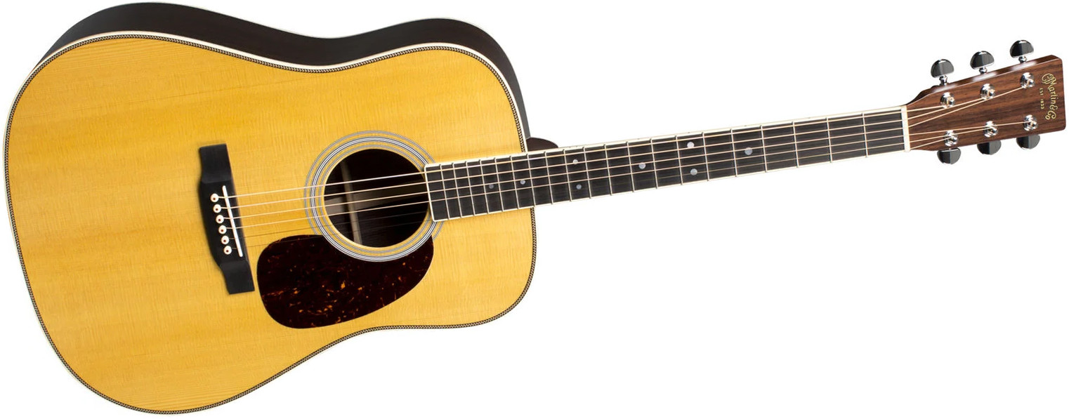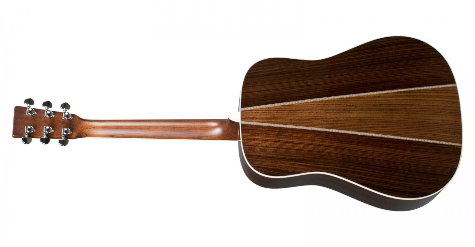Additionally, it differs from the HD-28 with its three-piece Indian rosewood back, which is both an aesthetic and technical virtuosity, enhancing the mid-range frequencies.