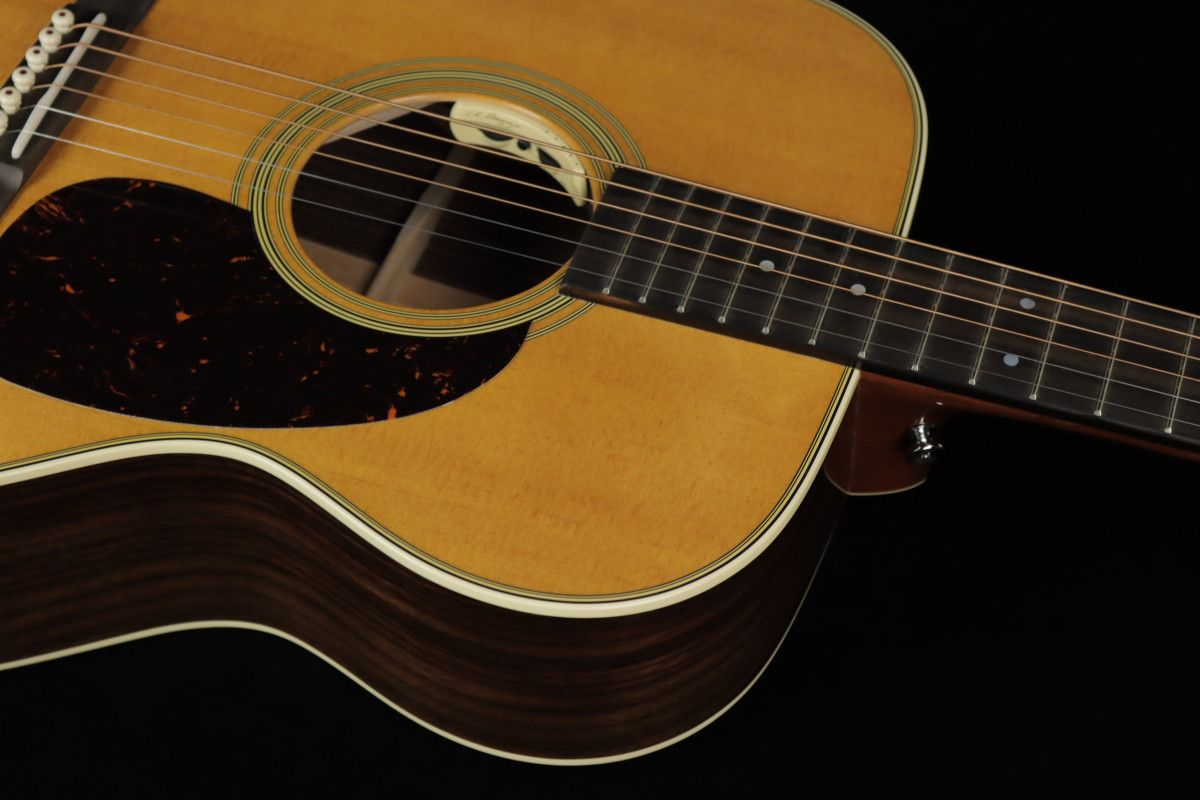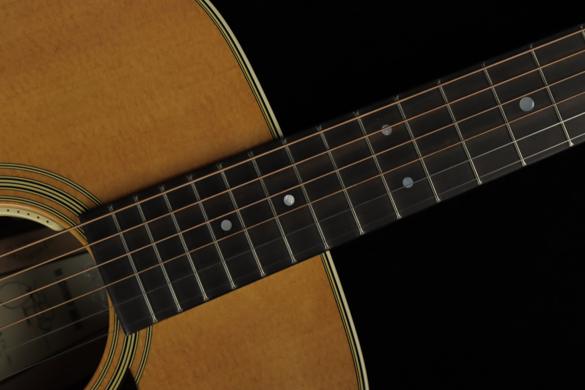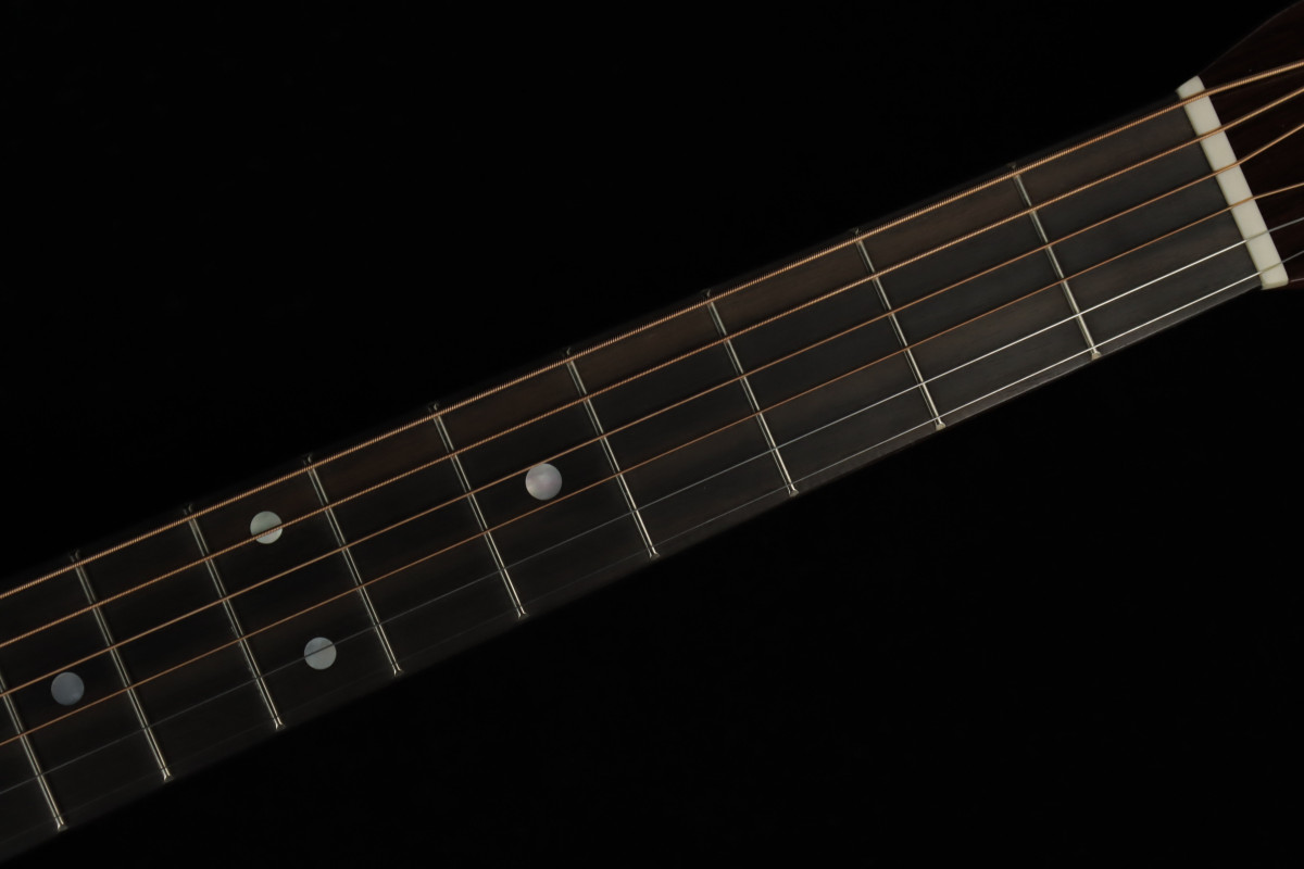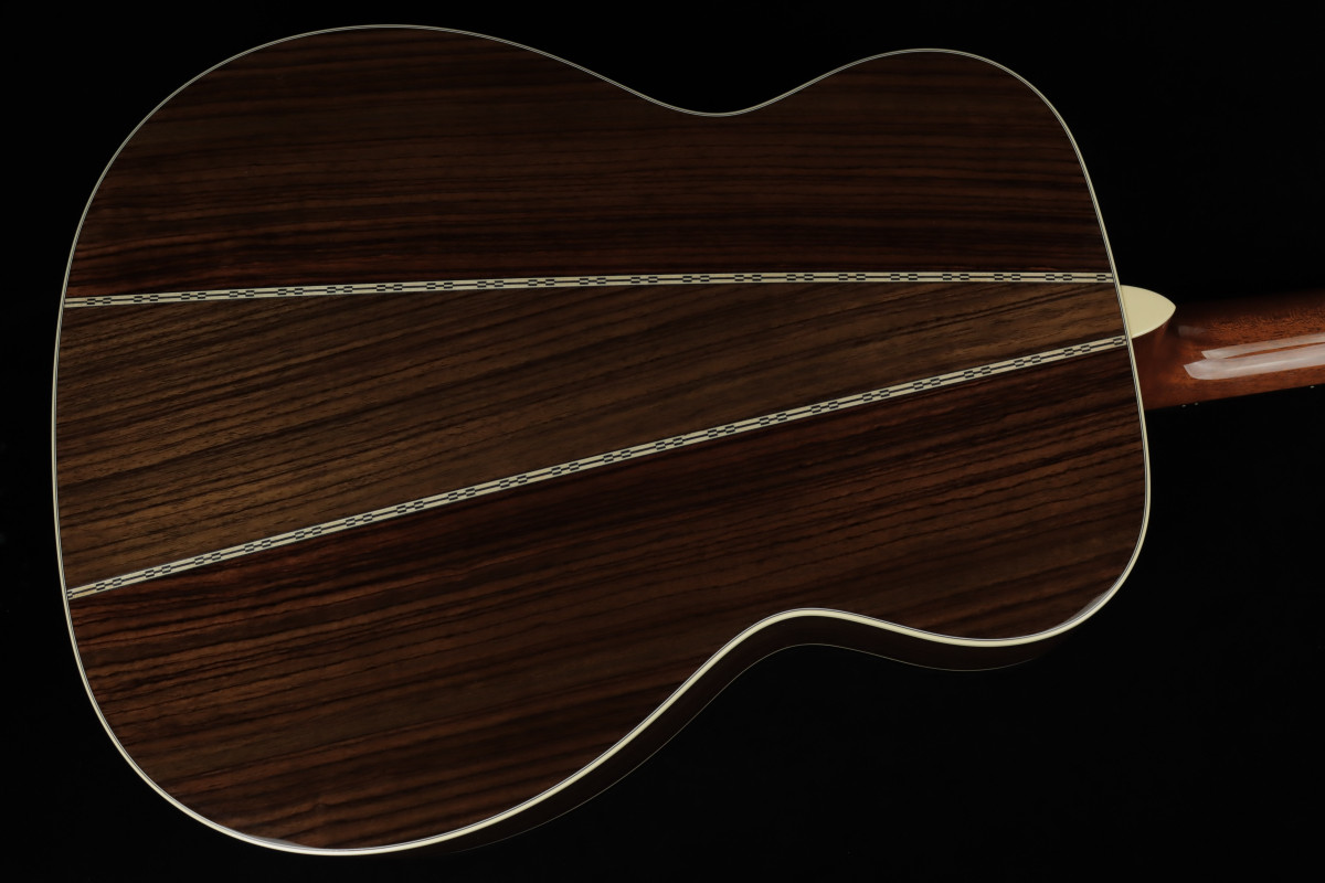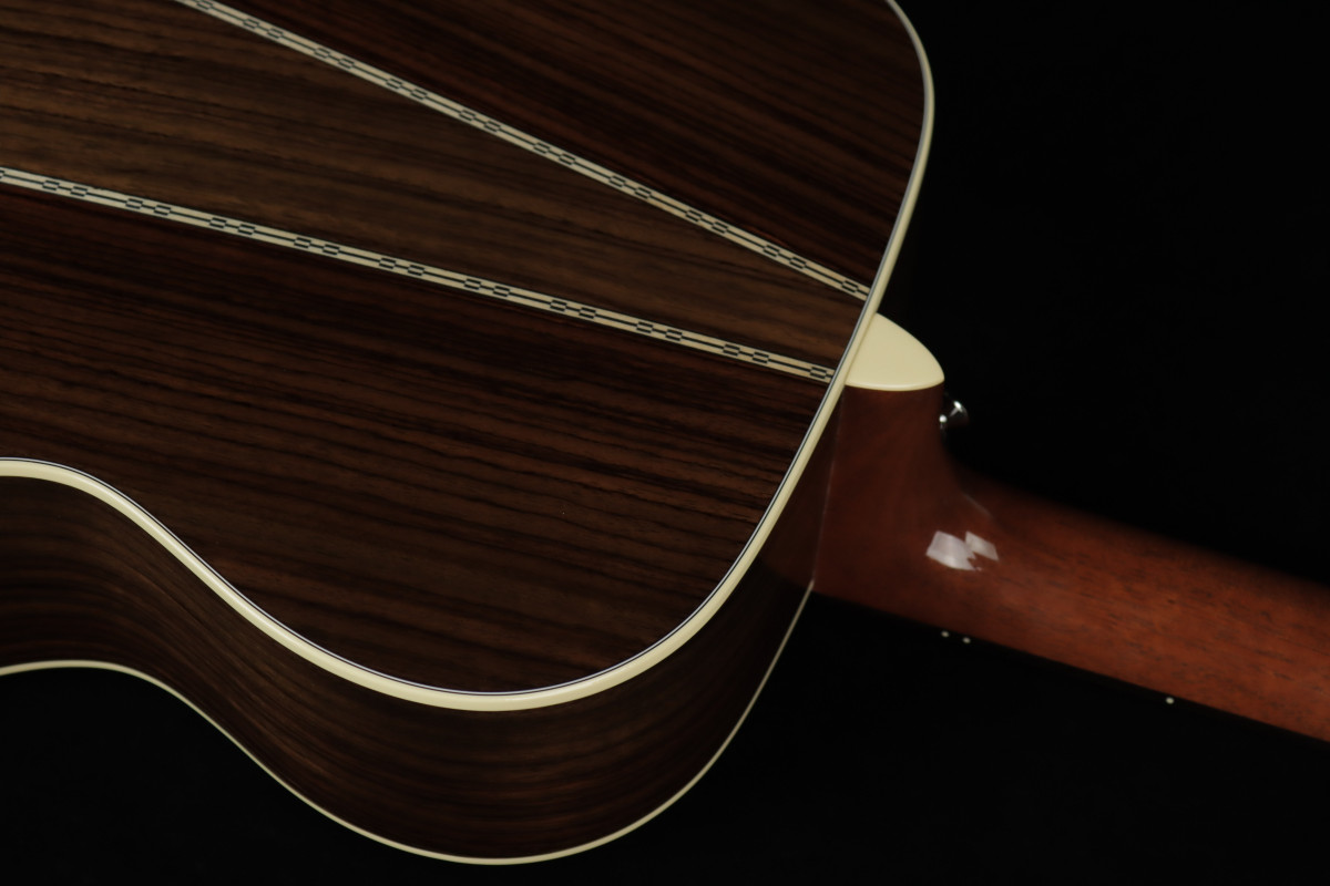 The solid Sitka spruce top, paired with solid Indian rosewood back and sides, guarantees a warm, defined sound with great harmonic depth, all enhanced by the scalloped bracing pattern that significantly improves the instrument's resonance. The Grand Auditorium body size ensures comfort and projection, combining the thickness of a 000 with the width of a Jumbo.