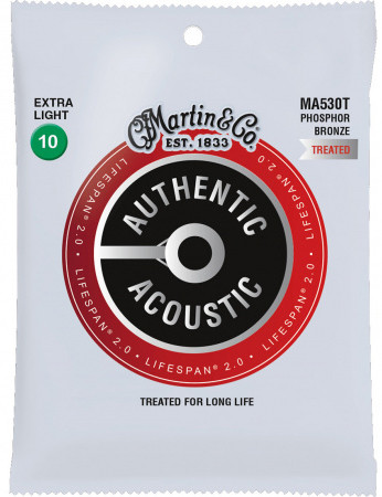The acoustic guitar strings from Martin & Co's Authentic Acoustic Lifespan® 2.0 series utilize a new technology patented by Martin after two years of research and development.