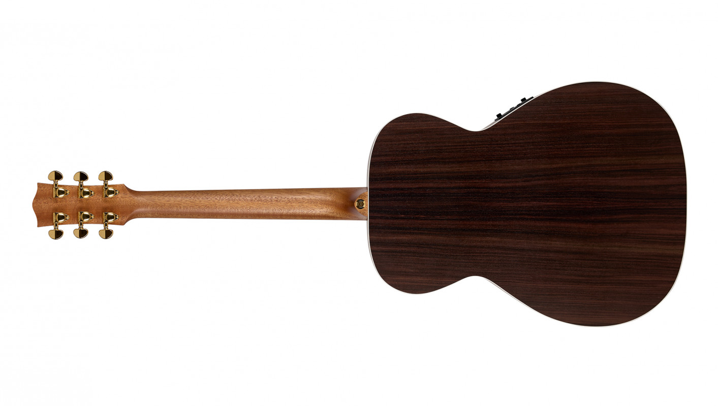 The result is a small-bodied guitar with a full tonal response that rings like a bell. There is no lack of bass due to the thinner body depth (the body is 10mm thinner than the 75th Anniversary body) as the depth is offset by the incredible rich bass produced by the rosewood back and sides. The reduced body depth also provides a little more focus in front of the guitar which will make it a brilliant recording instrument.