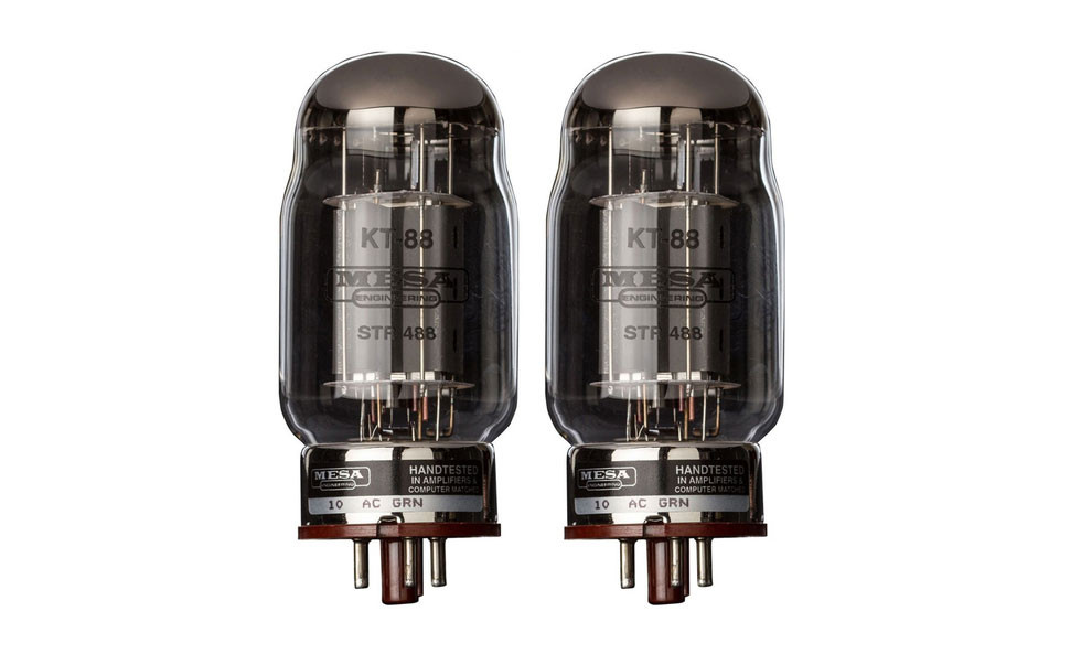 The Mesa Boogie KT-88 STR 488 Duet is a selected pair of premium power tubes designed for high-performance amplifiers that require significant power, definition, and reliability. The KT-88 is renowned for its ability to generate an enormous headroom reserve and a solid, powerful low-frequency response, making it an ideal choice for amplifiers that must deliver punch, dynamics, and presence even at high volumes.