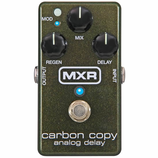 The Dunlop MXR M-169 Carbon Copy is a Delay pedal featuring a completely analog audio path for a warm and rich delay. The maximum delay time is 600ms with optional modulation. The controls include Delay Time, Mix (dry/wet), and Regen (delay repeats). Additionally, you can adjust the depth and intensity of the modulation, allowing for a wide range of sounds.