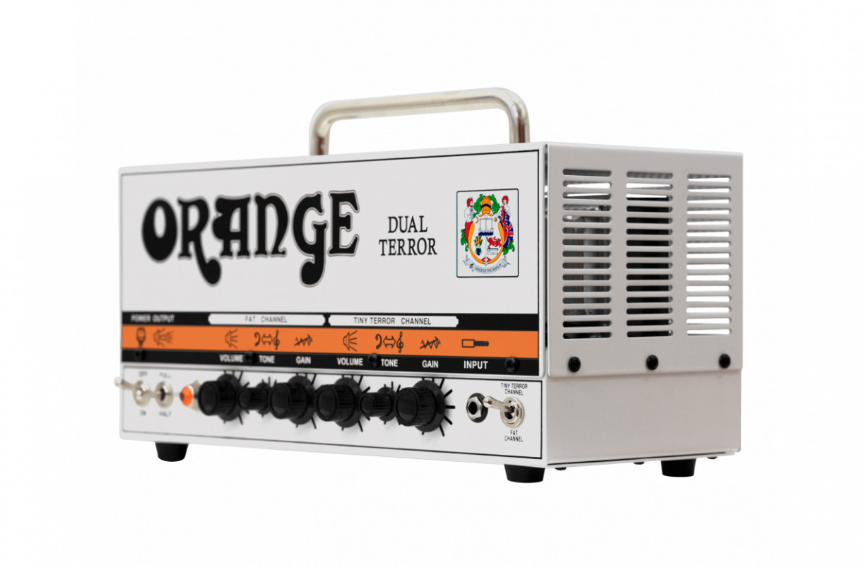 The Orange Dual Terror DT30H tube head features two fully tube-driven channels. The two-stage preamp allows for an incredible variety of tones available for each channel.