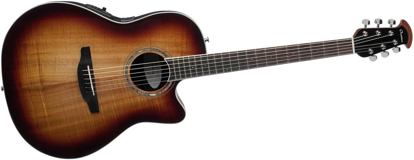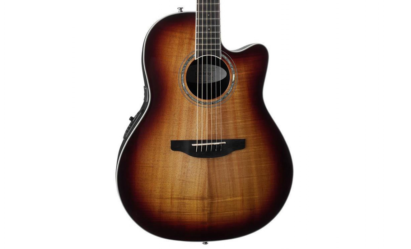 For musicians seeking an aesthetically pleasing and high-performing instrument at an affordable price. All the Ovation tradition is encapsulated in a Super Shallow body that is easy to hold, enhanced by a beautiful Koa top with a Dark Burst finish.