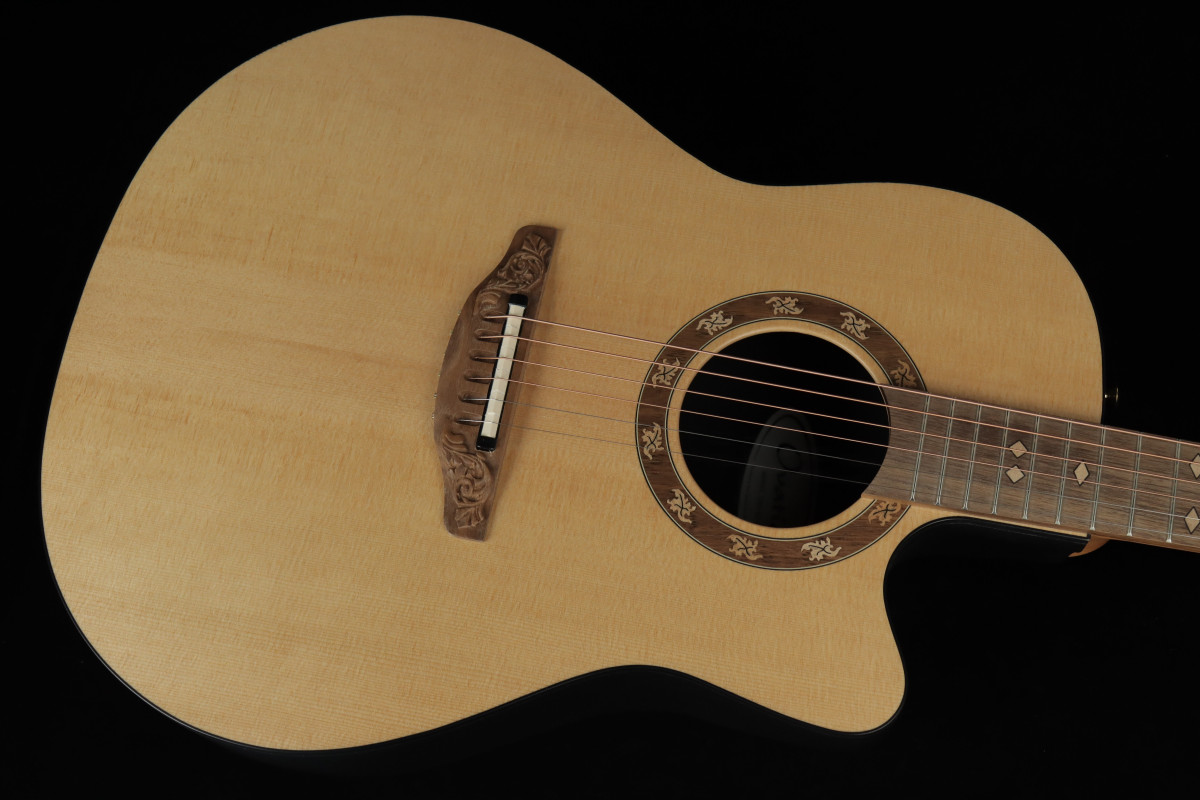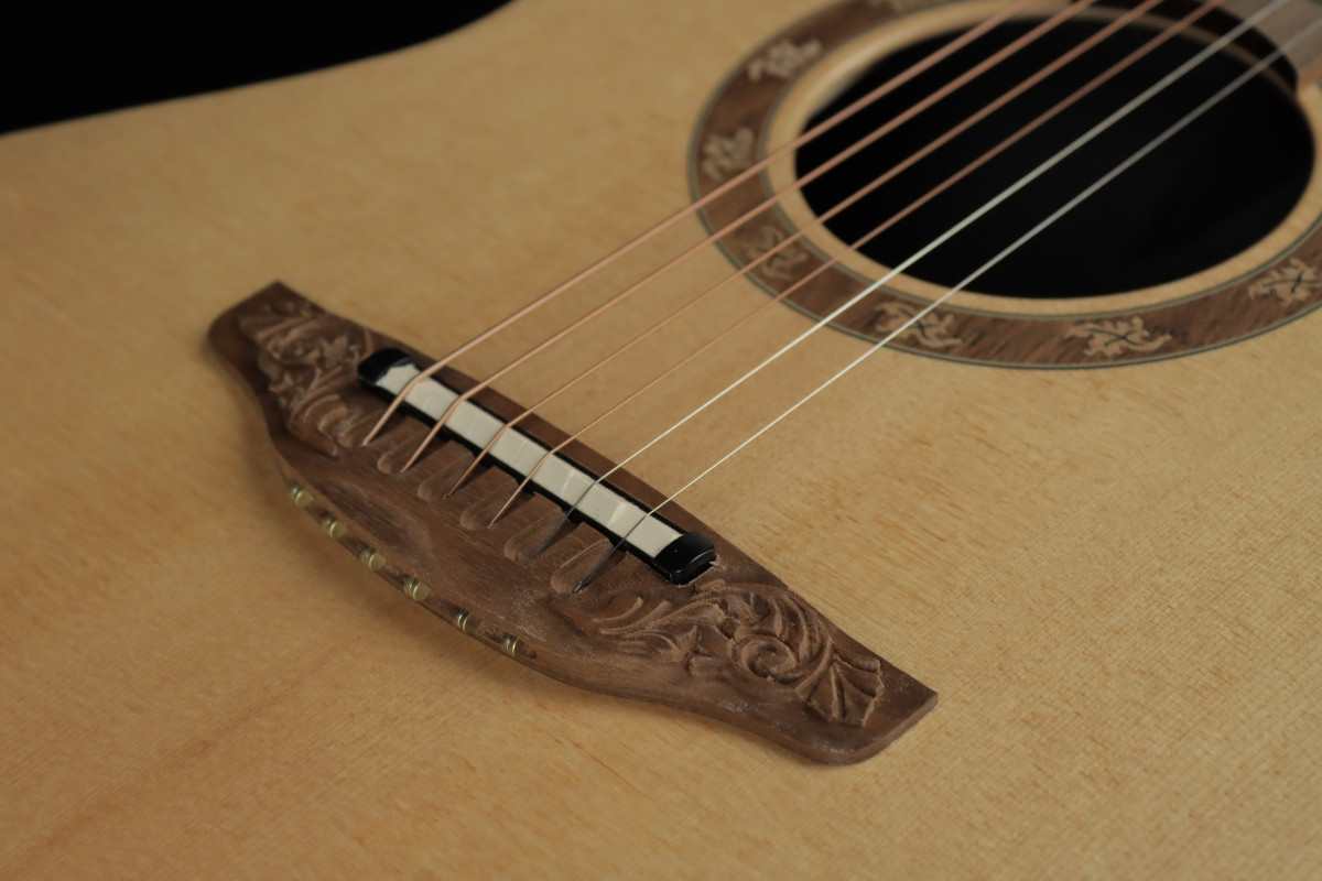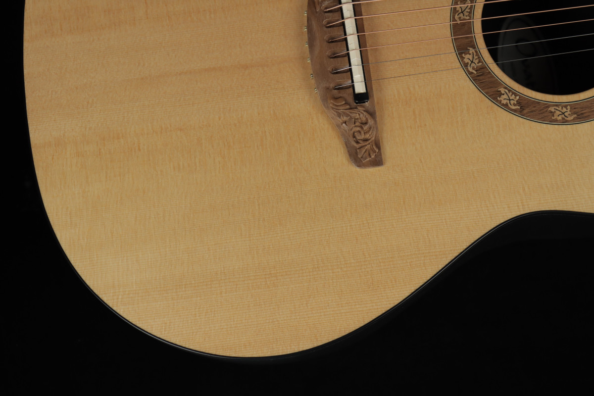 This American-made guitar features a solid AA Sitka spruce top, capable of producing a very defined, complex, and articulated sound, paired with the classic Lyrachord body.