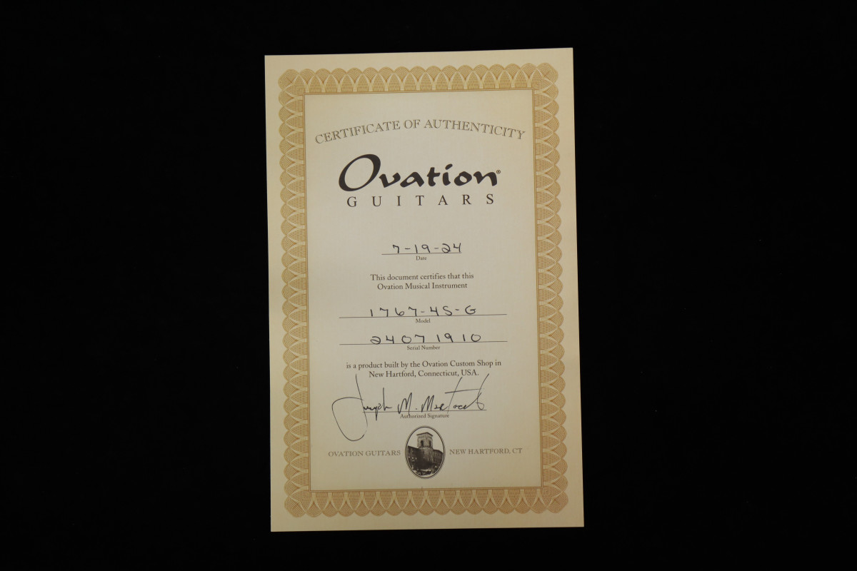 Since the mid-1960s, Ovation has emerged as a distinctive brand both aesthetically and technically. After years of anticipation, this Ovation Pro Legend 1767-4S-G USA brings the production of the legendary American brand back to its roots.