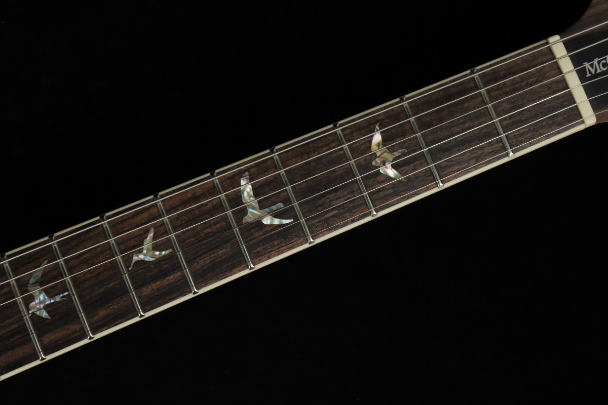 The PRS McCarty is outfitted with McCarty III treble and bass pickups. McCarty III pickups were spec’d by Paul Reed Smith and the PRS New Products Engineering team. From our own hands-on research into coveted vintage pickup models to advancements in signal analyzation and “tuning” technology, these pickups incorporate every detail of pickup knowledge PRS has gained in recent years of R&D. PRS McCarty III pickups are vintage-inspired humbuckers that bring a vocal clarity to their full, warm tone. Paired with a push/pull tone control and a 3-way toggle pickup switch, these pickups provide a complete palette of tones.