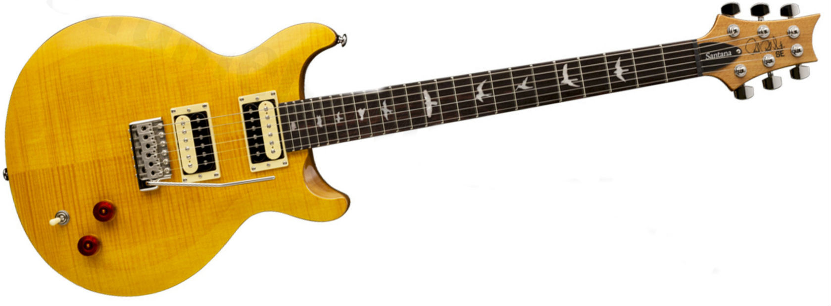 The influence of Carlos Santana as a guitarist has led Paul Reed Smith to develop the SE series of electric guitars, which was launched in 2001. In honor of this legacy, PRS is proud to introduce the new SE Santana series, the first guitar in the series with a 24 1/2" (622mm) scale length, and it is also the first SE created using the same silhouette as the American-made models.