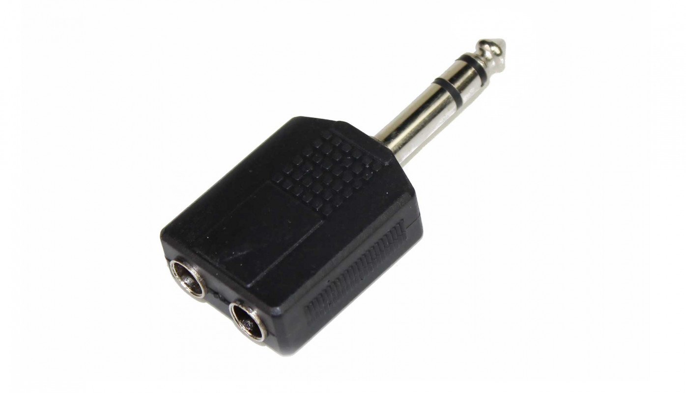 ABS adapter: 2 stereo jack outputs Ø 6.3 mm. -> stereo jack plug Ø 6.3 mm.