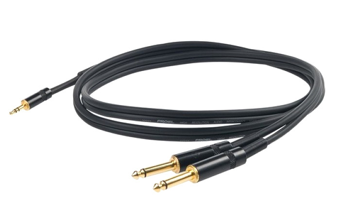 - Connections: Stereo jack plug Yongsheng Ø 3.5 mm - 2 x Mono jack plug Ø 6.3 mm