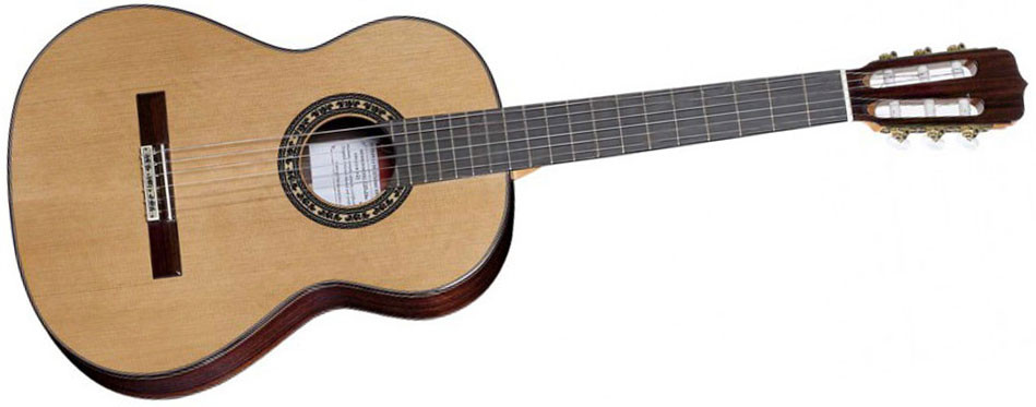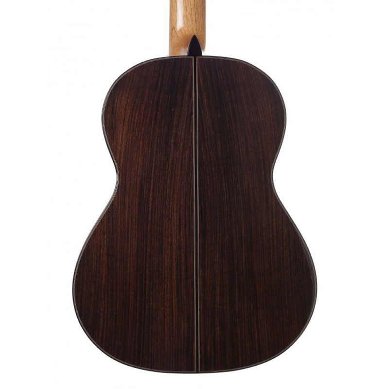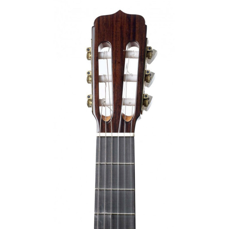 The new headstock along with the new rosette are the first visual characteristics of the new Studio Line and they are designed by Amalia Ramirez, but the improved sound and overall quality of the new template are the main points in this new line of guitars. The Ramirez Estudio 3 is build with a solid cedar top, solid Indian rosewood back and sides and ebony fretboard. A great guitar for advanced students and professionals looking for the legendary Ramirez sound.