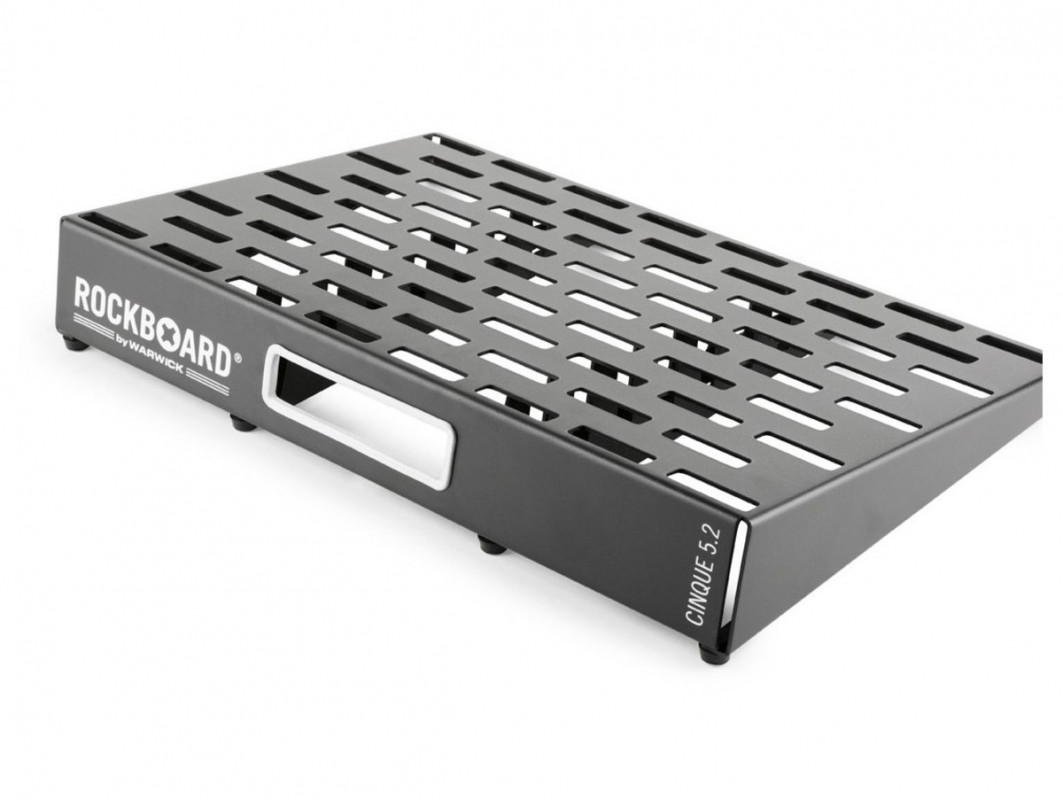 Its ingenious design is based on a perforated aluminum plate, which allows for a larger flat surface compared to traditional "rail" pedalboards.