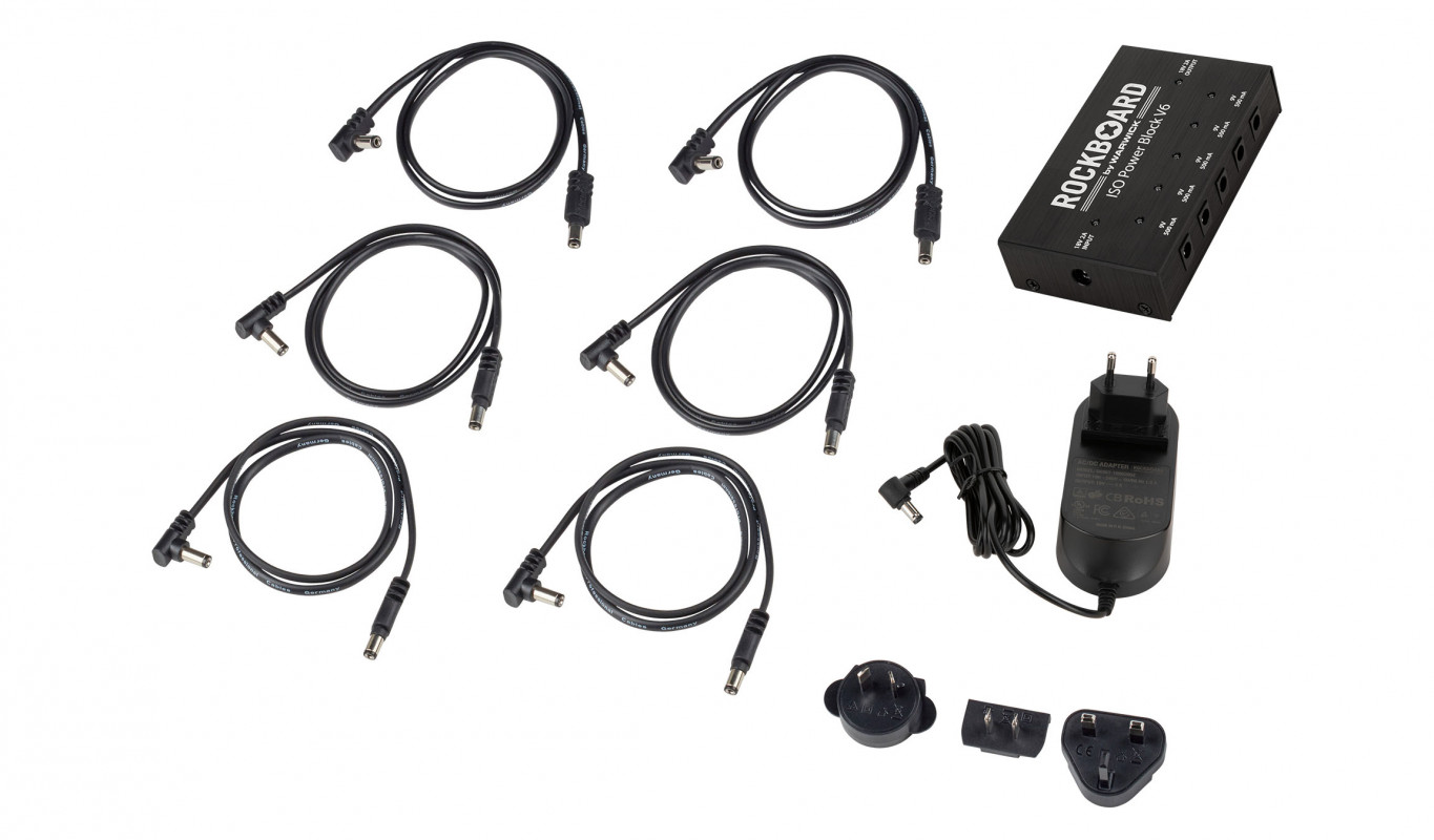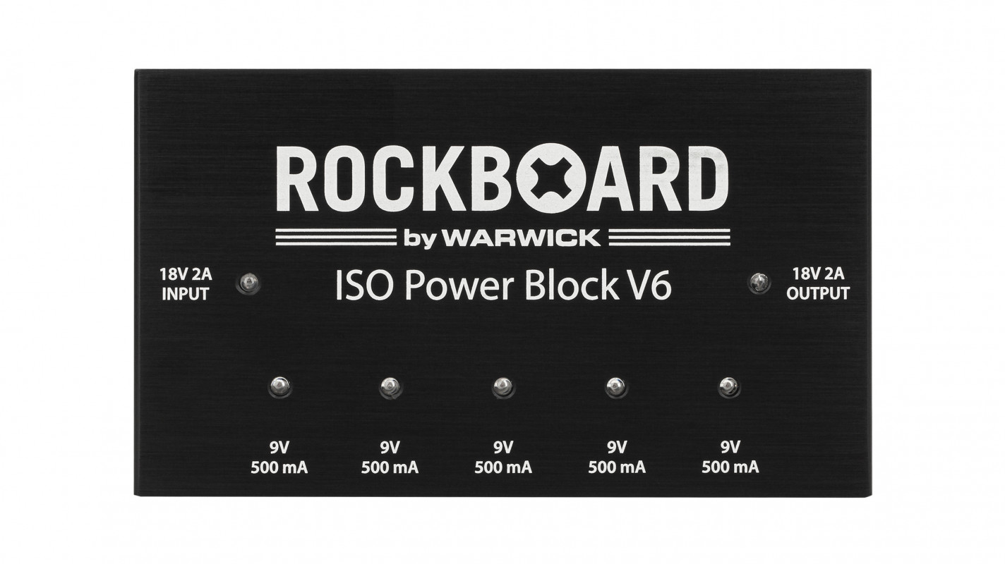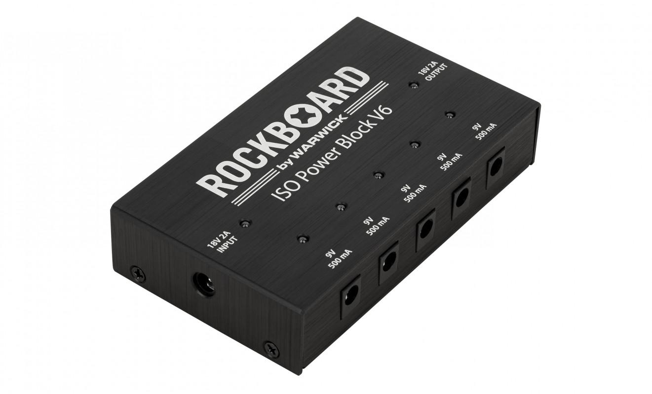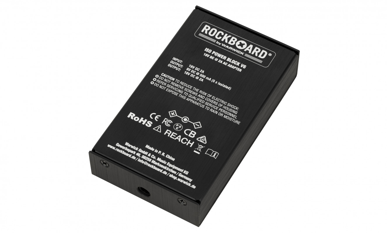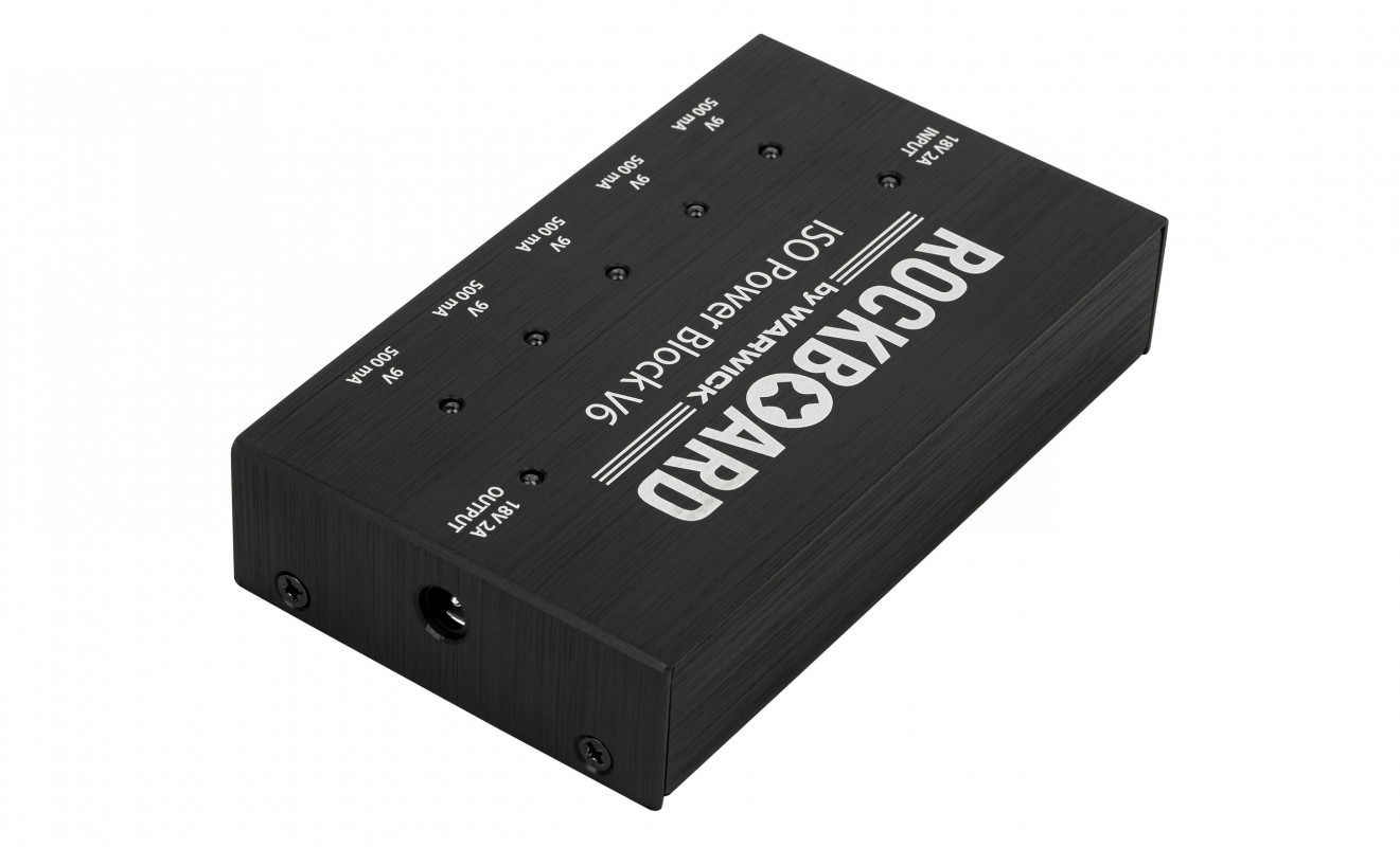 The RockBoard Power Block ISO V6 is a compact multi-power supply perfect for powering pedals and effects. It features 6 fully isolated outputs with a total of 2,500 mA, individual status LEDs, and short circuit protection.