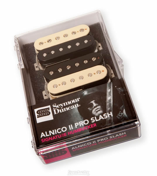 The Seymour Duncan APH-2s Alnico II Pro Slash Set pays tribute to the great guitarist Slash with his first signature pickup set. The tone of these pickups will undoubtedly be familiar to anyone who has listened to Slash's recordings. Although he has dozens of guitars, since 1986, Slash has predominantly used a specific Les Paul for most of his recordings. The Alnico II Pro Slash pickups have been designed to deliver the exact tone of this legendary guitar, even for the guitars he uses "live."