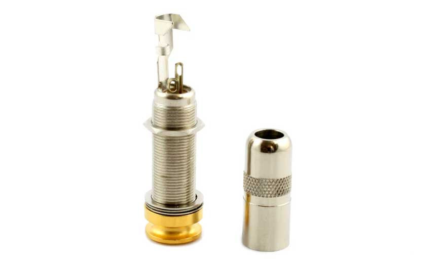 The Switchcraft 3-Conductor End Pin Jack is an easy-to-install output jack that can be secured from the inside. It can be used for both mono and stereo connections.