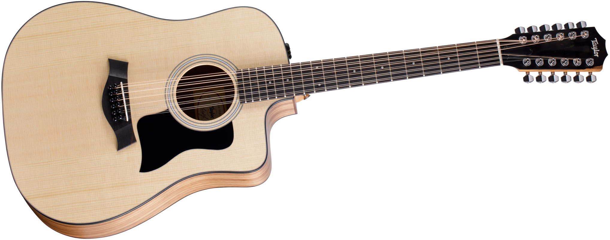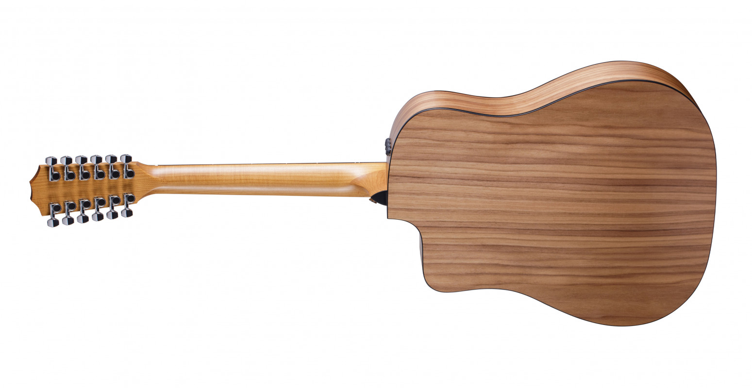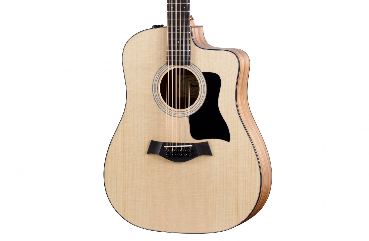 The Taylor 150ce is the 12-string instrument from the 100 Series. This non-cutaway Dreadnought features a back and sides made of sapele, along with a solid "Torrified" spruce top.